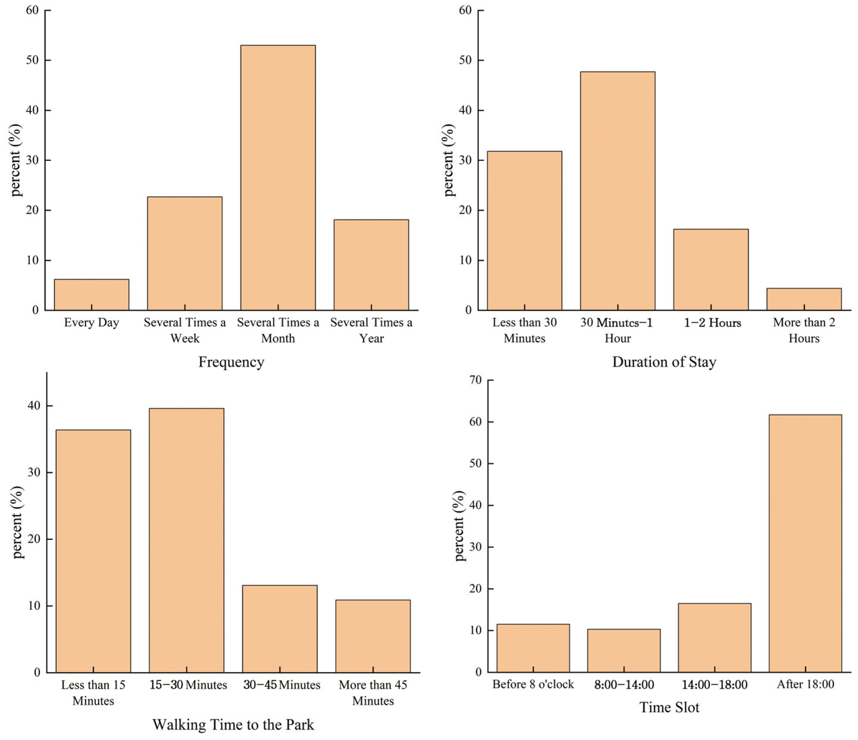 16]. Consequently, pedestrians in urban parks exhibit varying behavioral intentions and destination choices. Destination loyalty, which reflects a resident’s willingness to revisit a place and the frequency of their visits, encompasses both attitudinal and behavioral dimensions [