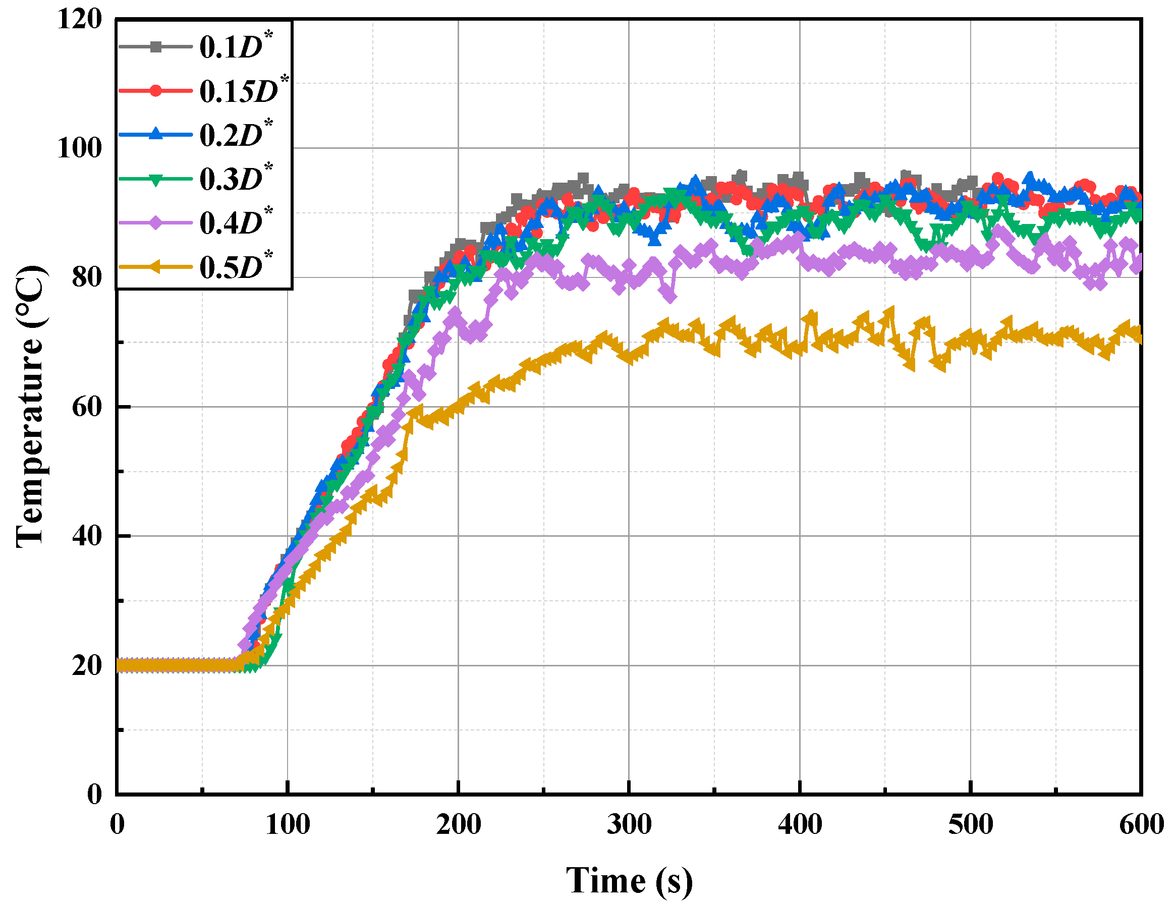 3.3. Effect of Fire Source Distance on Tunnel Temperature Distribution