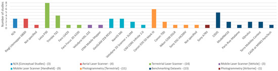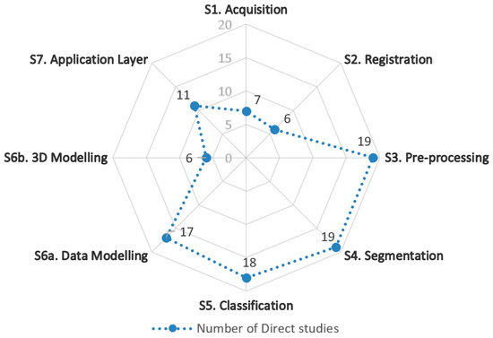 - Level 2: Application implementations—general (n = 2; 9.1%) [51,52] and archeological (n = 4; 18.2%) [13,14,53,54].