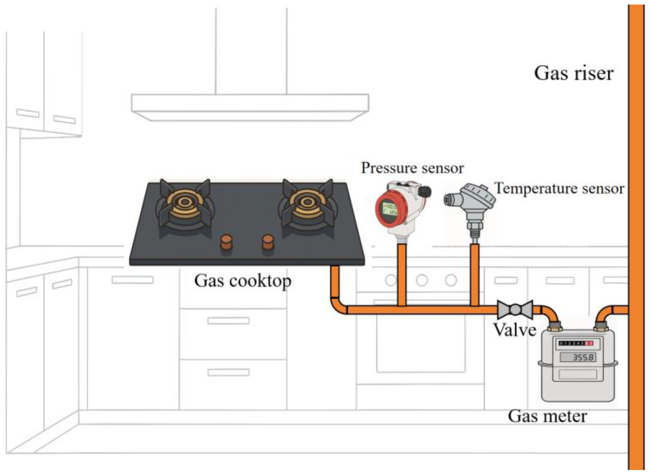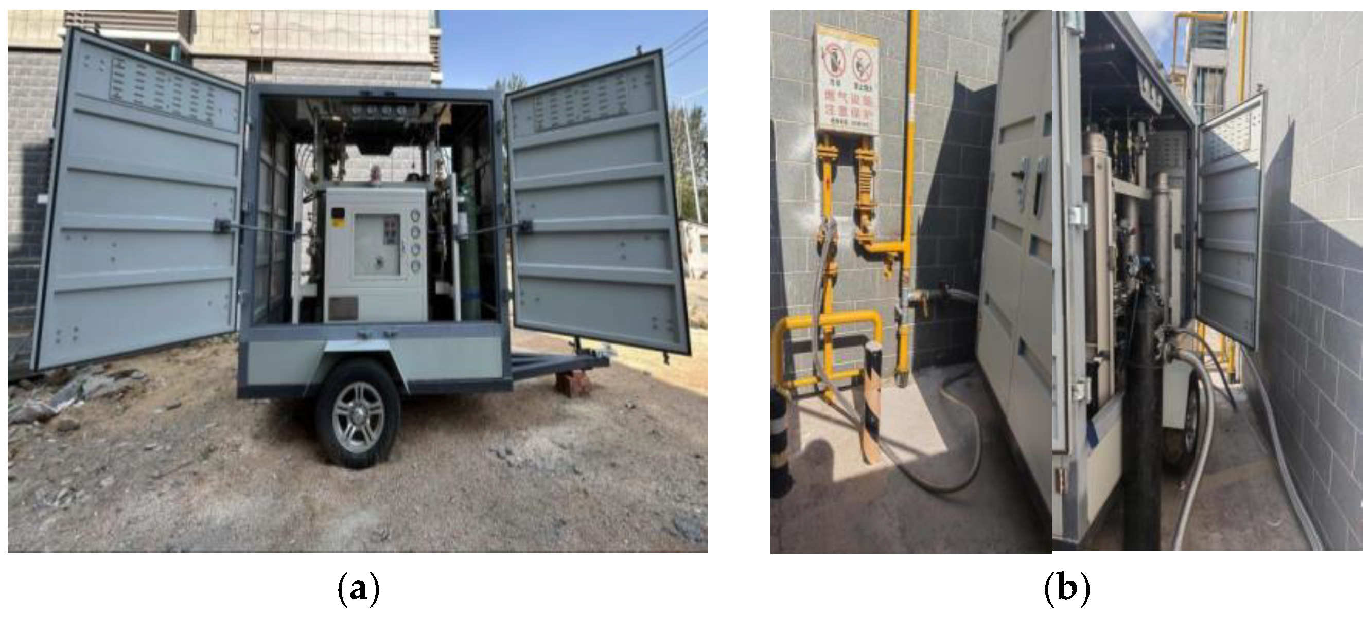 - A high-precision pressure sensor and a temperature sensor were installed on the downstream pipeline, as shown in Figure 4;