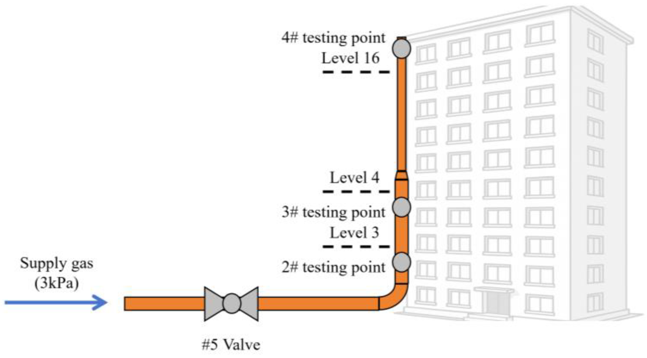 - The pressure at the 16th floor (#4 testing point in Figure 3) was subsequently measured under the same operating conditions;
