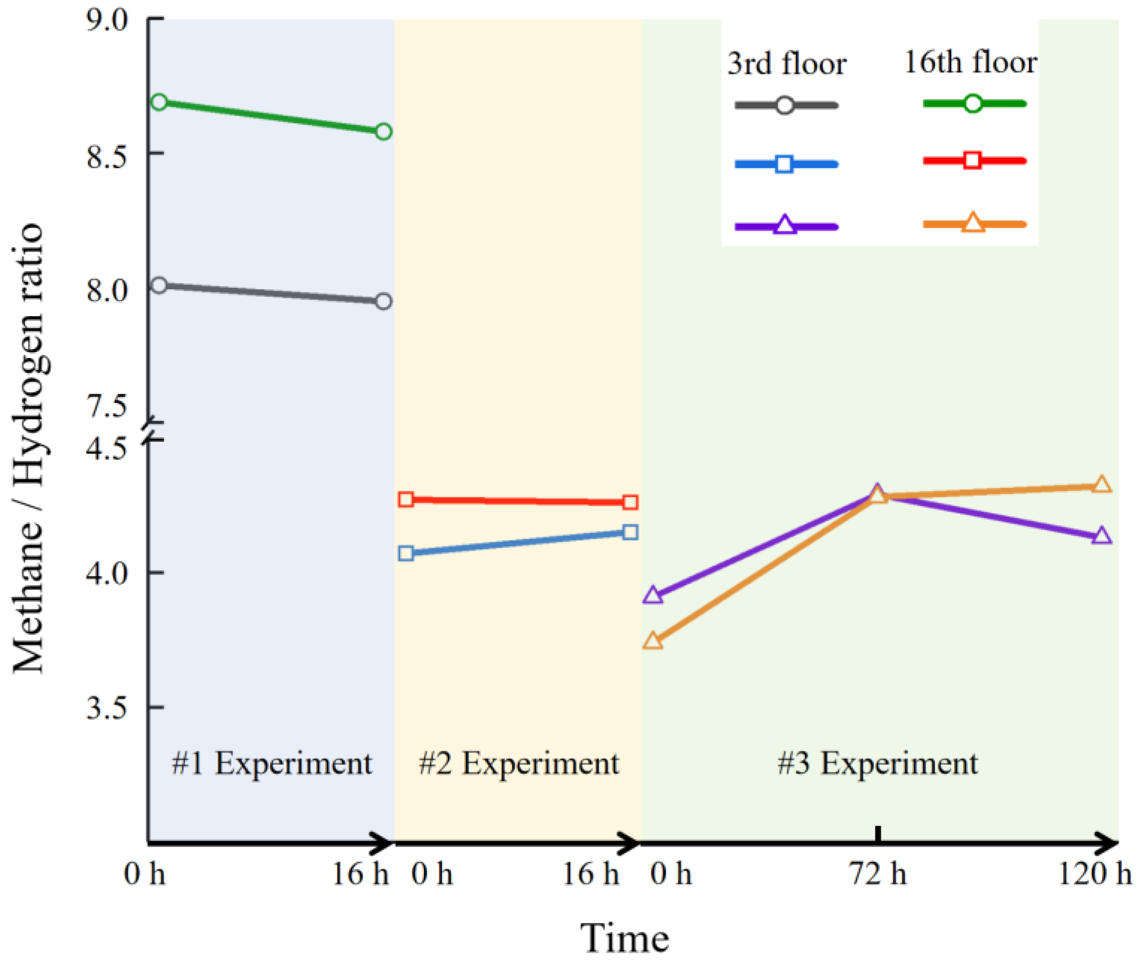 - After a standing period exceeding 12 h, methane and hydrogen concentrations at the same testing points were measured again to evaluate potential stratification effects.
