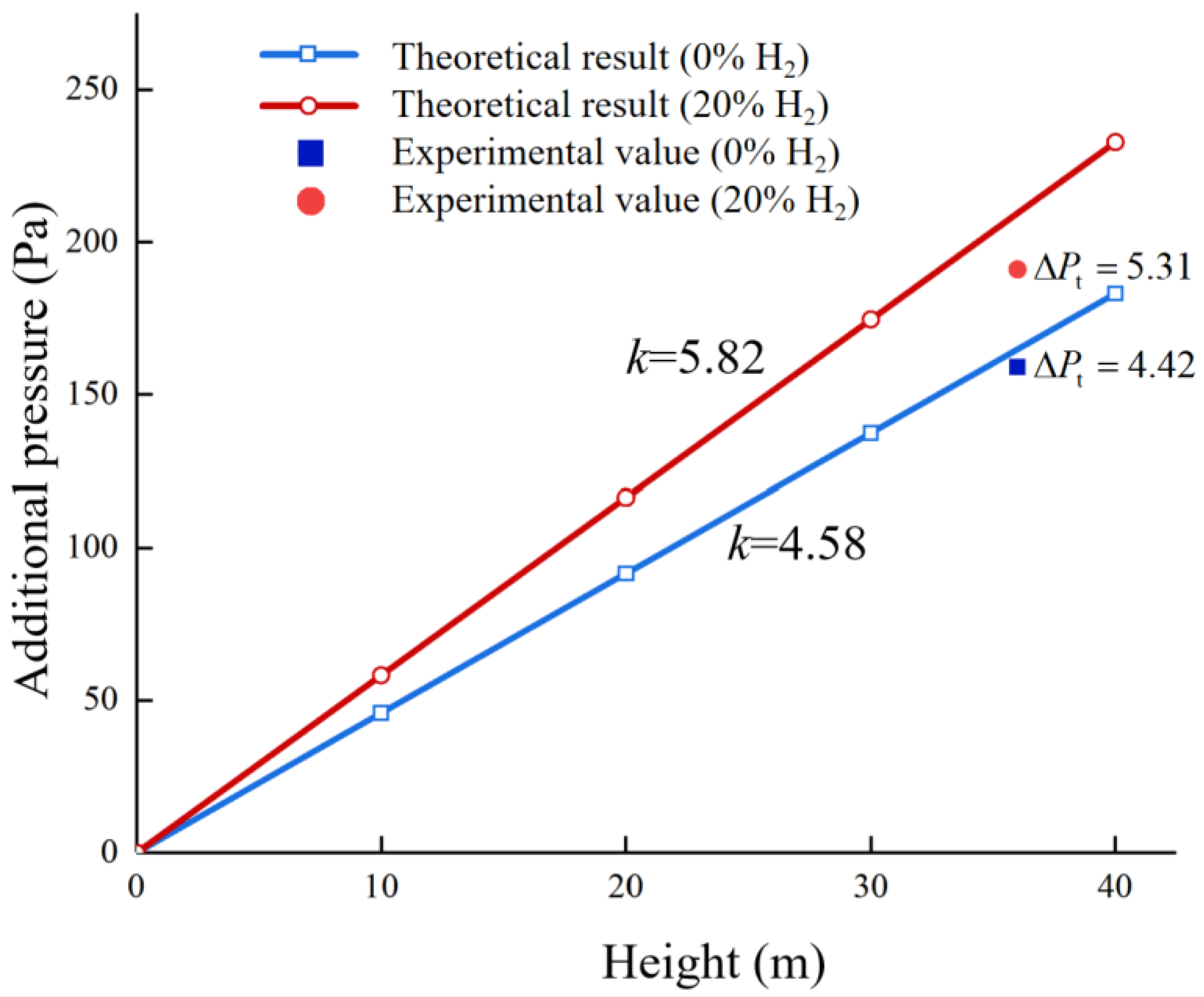 - Hydrogen blending increases the additional pressure in risers. Every 10% hydrogen blending results in approximately 0.56 Pa/m of extra additional pressure. Compared with appliance operating pressures and the normal allowable operating pressure fluctuation range, this extra additional pressure is relatively small.