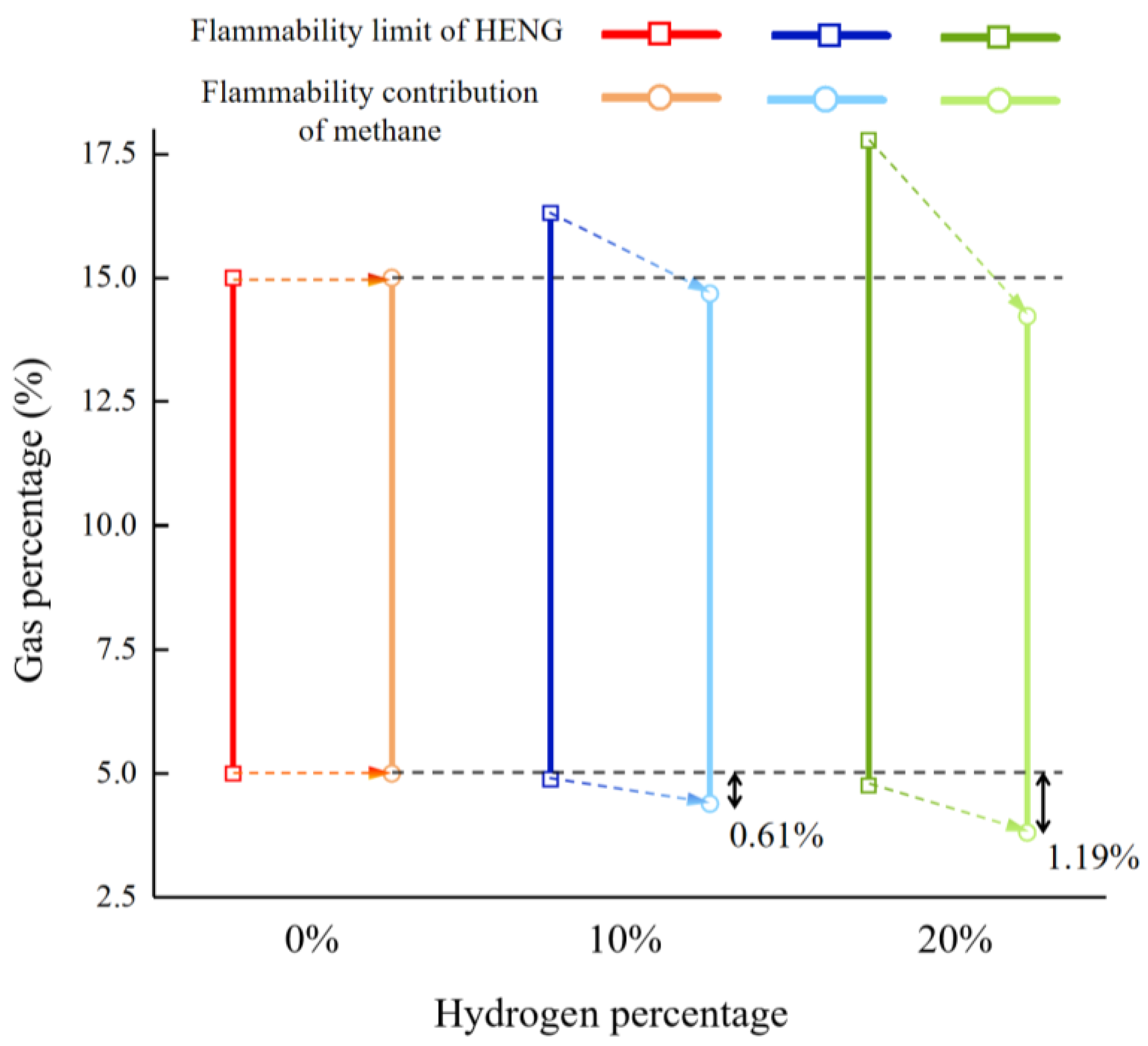 - Domestic gas alarms remained responsive and reliable under 0–20% hydrogen ratios. Although hydrogen alters the flammability range, alarm detection accuracy and response time remained within acceptable limits for residential safety.