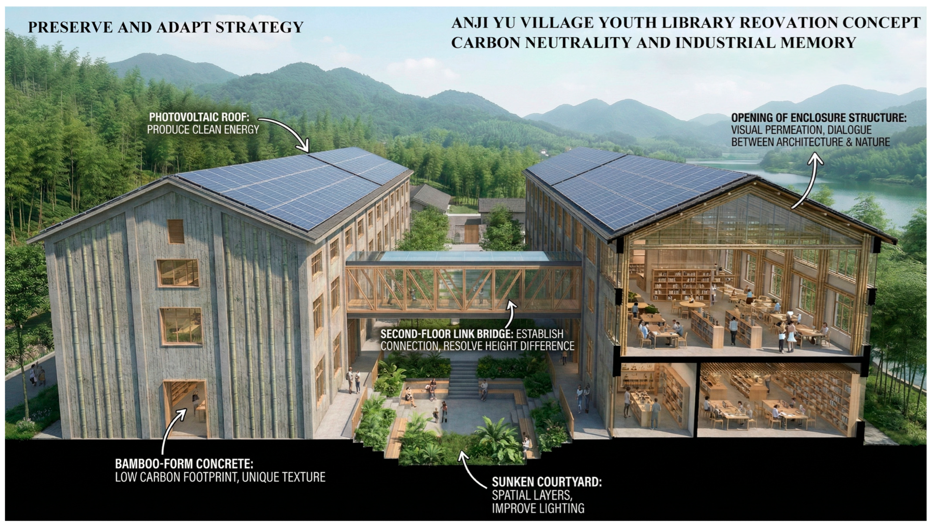 - Yu Village (innovation-driven): currently operates the “Smart Yu Village” mobile platform and a “Zero-Carbon” library management system. These systems primarily function to collect social participation data and monitor building energy consumption.