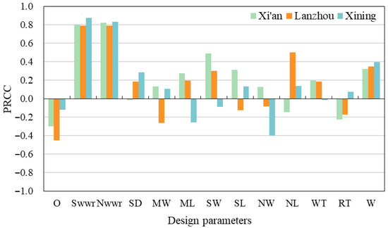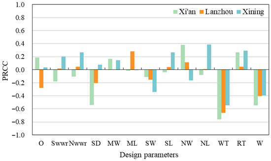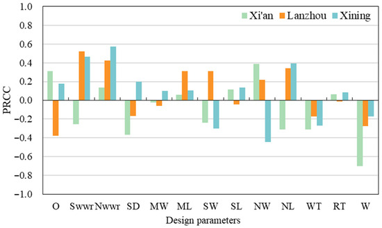 Parametric model of the ODPcomp for a typical high-rise residence. (a) Xi’an; (b) Lanzhou; and (c) Xining.