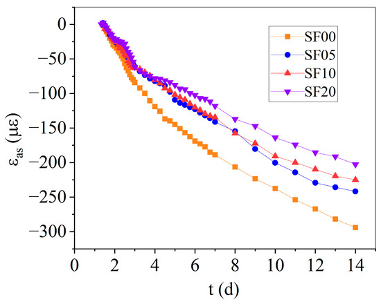 44]. The inclusion of steel fibers was found to reduce autogenous shrinkage, which gradually decreased with increasing steel fiber content [