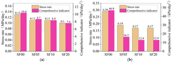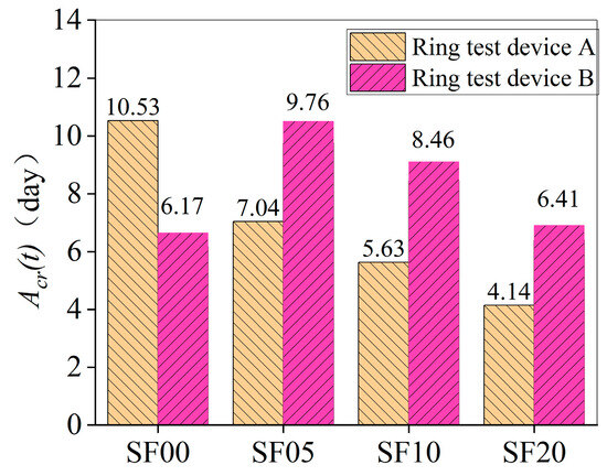 Figure 8. With respect to the results from the tests of Setup A, since the stress in the SFLWAC ring was calculated via Equation (5), which differs from the method in Meng’s study, the resulting cracking indicator