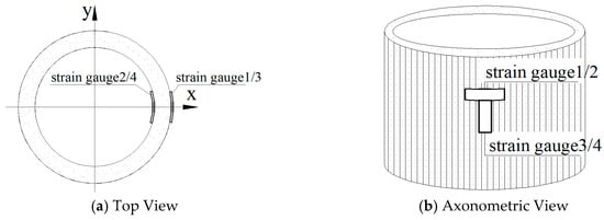 Tangential strain in raw bamboo was measured using electrical resistance strain gauges. Four strain gauges were bonded to the inner and outer surfaces as shown in Figure 1. Two perpendicular datum lines were marked on specimen end faces: one aligned with the major axis orientation and the other with the minor axis orientation.