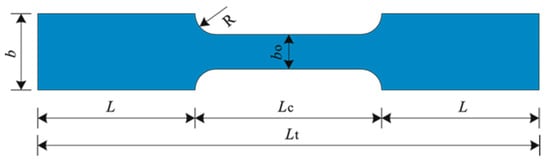 Concrete test blocks were cast during specimen fabrication and cured under the same conditions as the main specimens. According to the testing methods specified in the code [31] for mechanical properties of concrete, the average compressive strength of the concrete cube samples was measured to be 54.5 MPa. Figure 9 and Table 1 show the geometry and dimensions of the steel plate mechanical property test specimens. The preparation and testing procedures followed the standard for metallic materials-tensile testing at room temperature [32]. The corresponding test results are provided in Table 2.