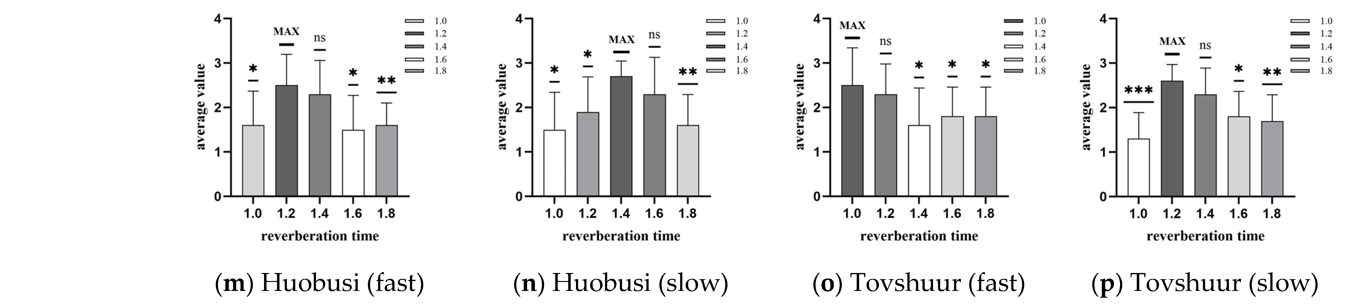 APA StyleYue, X., Ni, S., Qu, Z., Xu, Z., Yang, D., & Zhu, X. (2026). Preference Evaluation of Reverberation Times for Traditional Inner Mongolian Musical Instruments in Performance Spaces. Buildings, 16(2), 331. https://doi.org/10.3390/buildings16020331