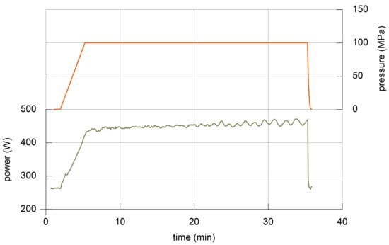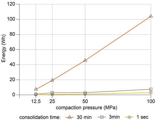 3.4. Influence of Consolidation Time and Compaction Pressure on Energy Consumption