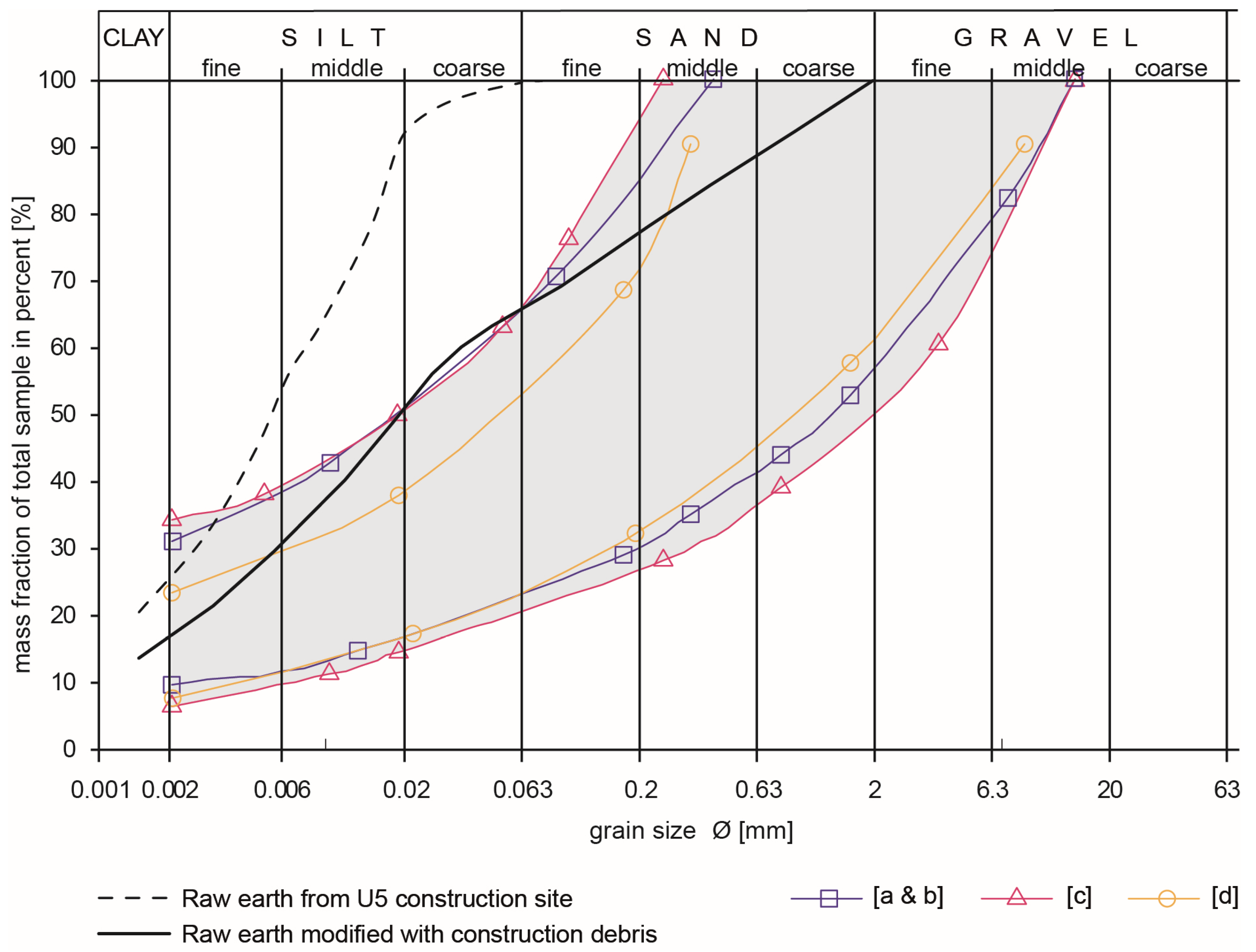 - Cuccurullo, A.; Gallipoli, D.; Bruno, A.W.; Augarde, C.; Hughes, P.; La Borderie, C. Influence of particle grading on the hygromechanical properties of hypercompacted earth. J. Build. Pathol. Rehabil. 2019, 5, 1–9. [Google Scholar] [CrossRef]
