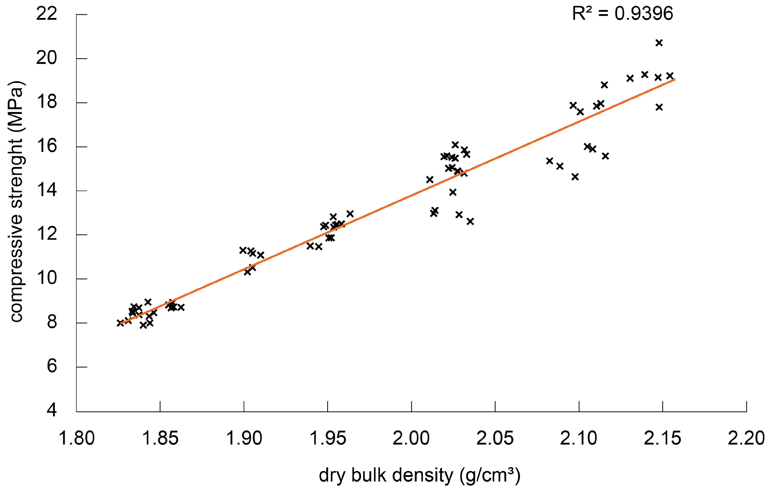 - According to a classification based on DIN 18945 [36], the compacted earth material examined in this study is only suitable for interior walls or applications with rigorous structural weather protection due to its limited water resistance.