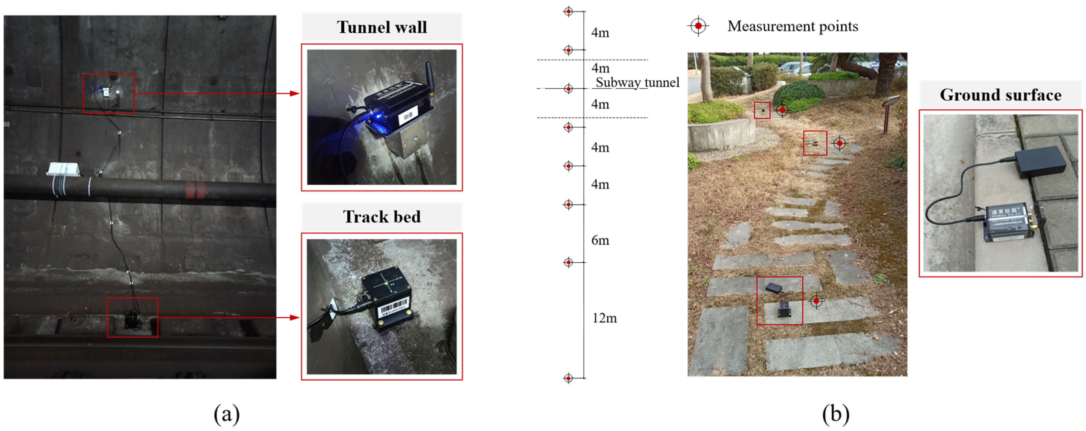 - Shao, Z.; Bai, W.; Dai, J.; Sun, G. Measurement and analysis of vibration responses due to subway transit in residential areas. Structures 2024, 69, 107305. [Google Scholar] [CrossRef]