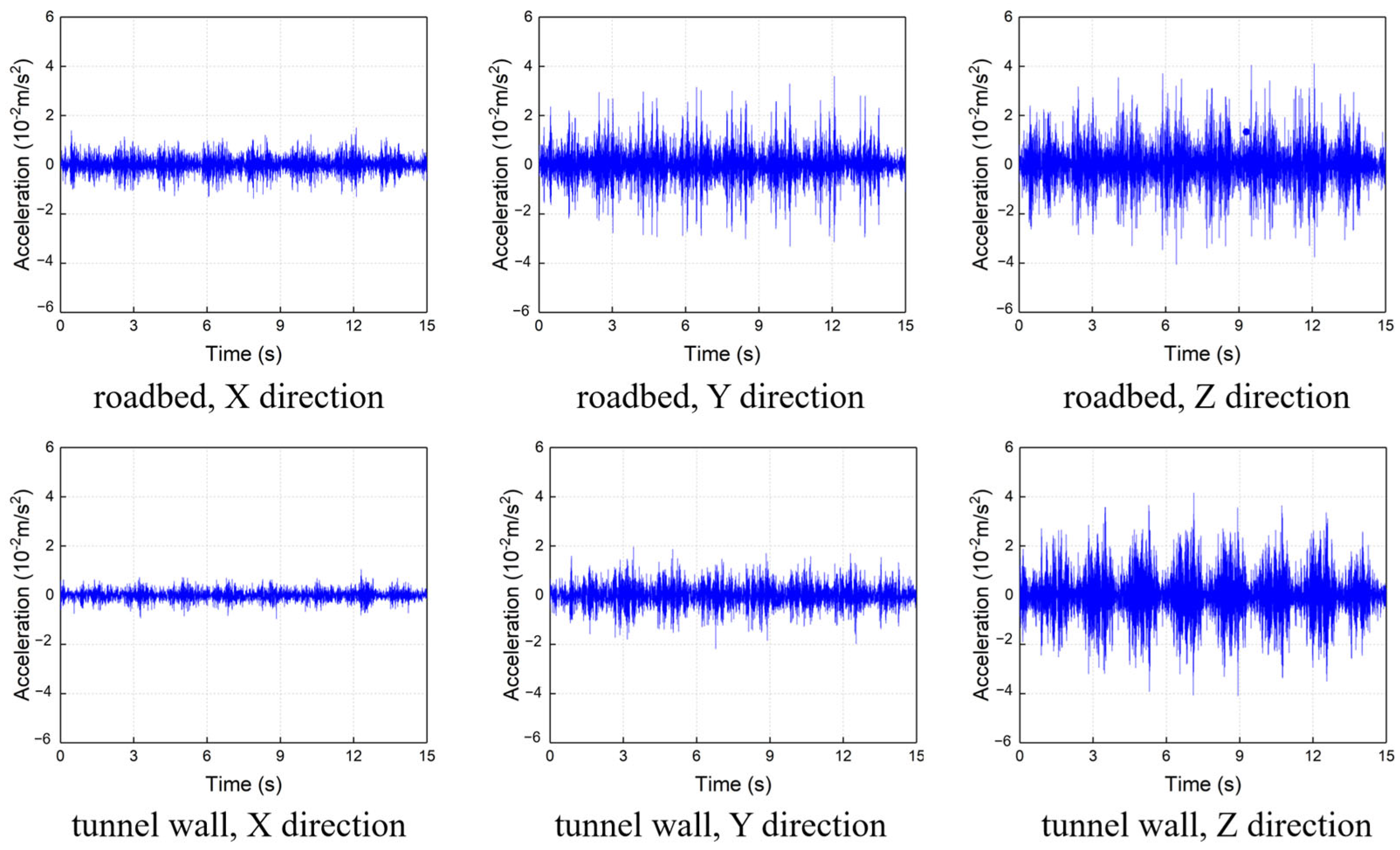 2.3. Characteristics of Vibrations in the Tunnel