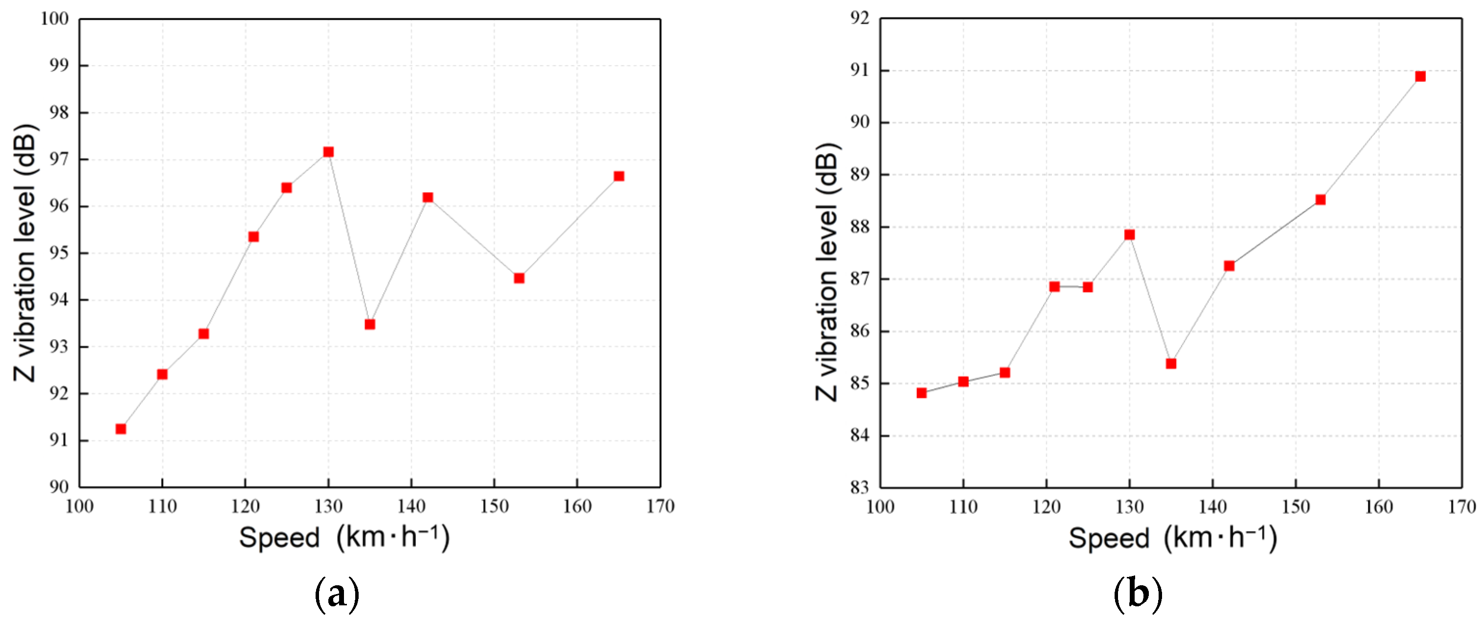 | Speed (km/h) | Measured Z Vibration Level (dB) | Predicted Z Vibration Level (dB) | Difference (dB) | Error |