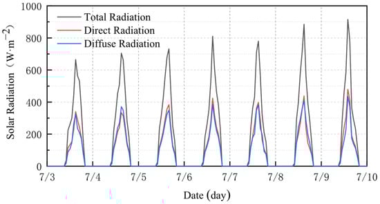 Total outdoor solar radiation during 3–10 July 2025.