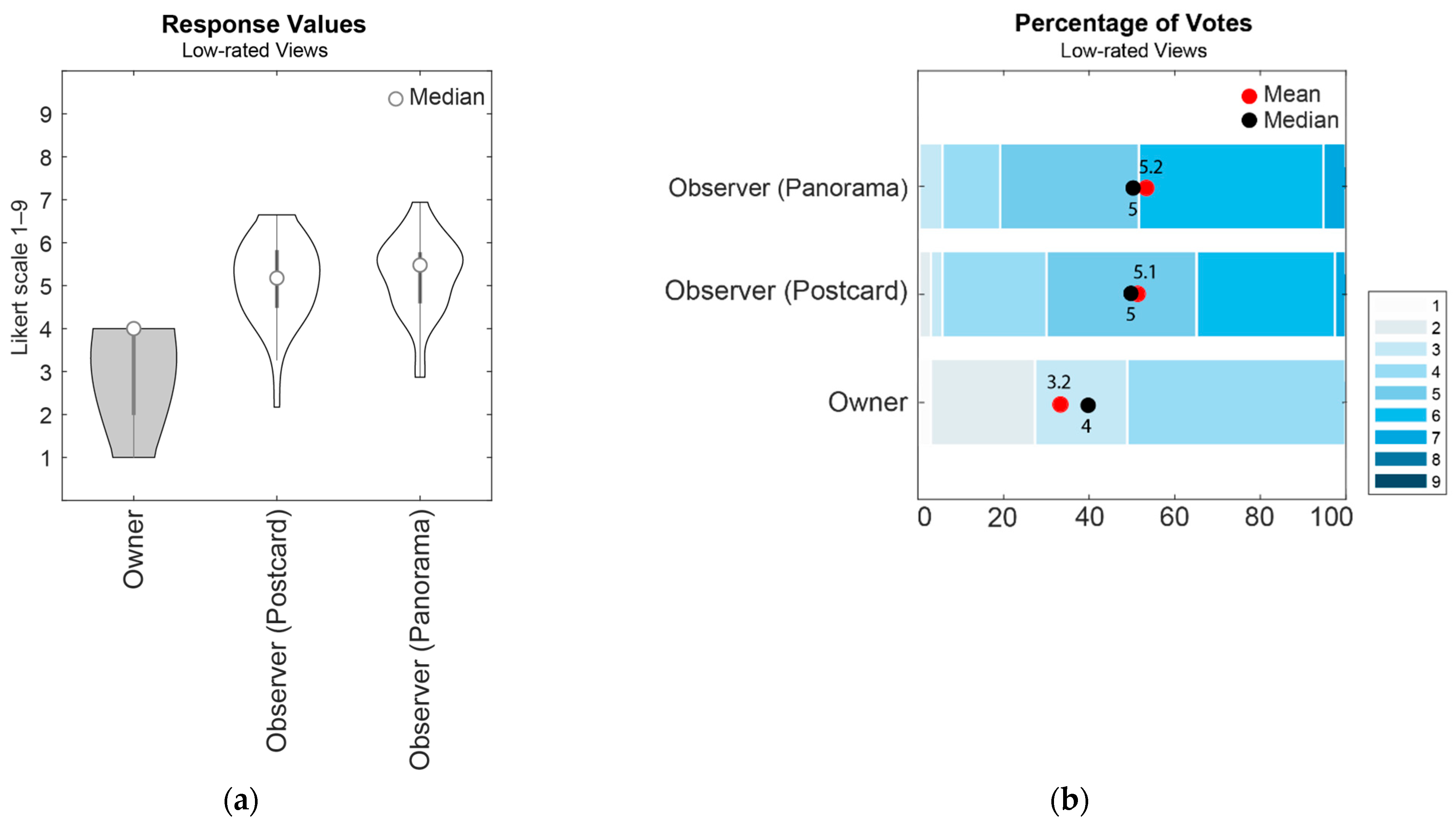 3.2. Comparison of Scores Expressed by “View Owner” and “View Observers”, High-Rated vs. Low-Rated Views