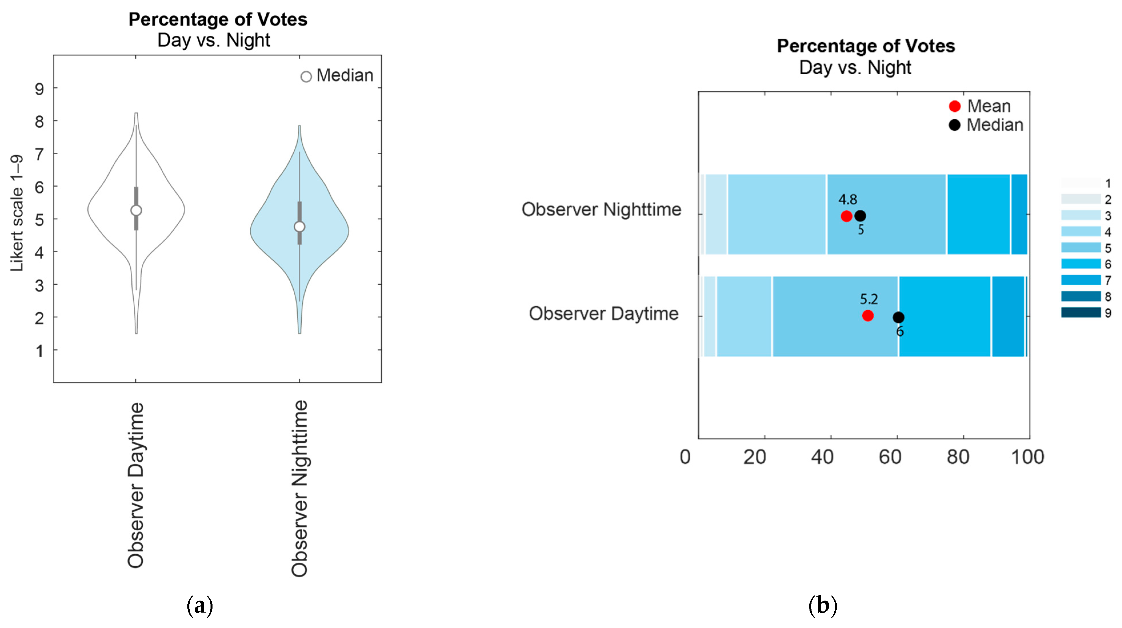 3.4. Perception of Night View vs. Day View