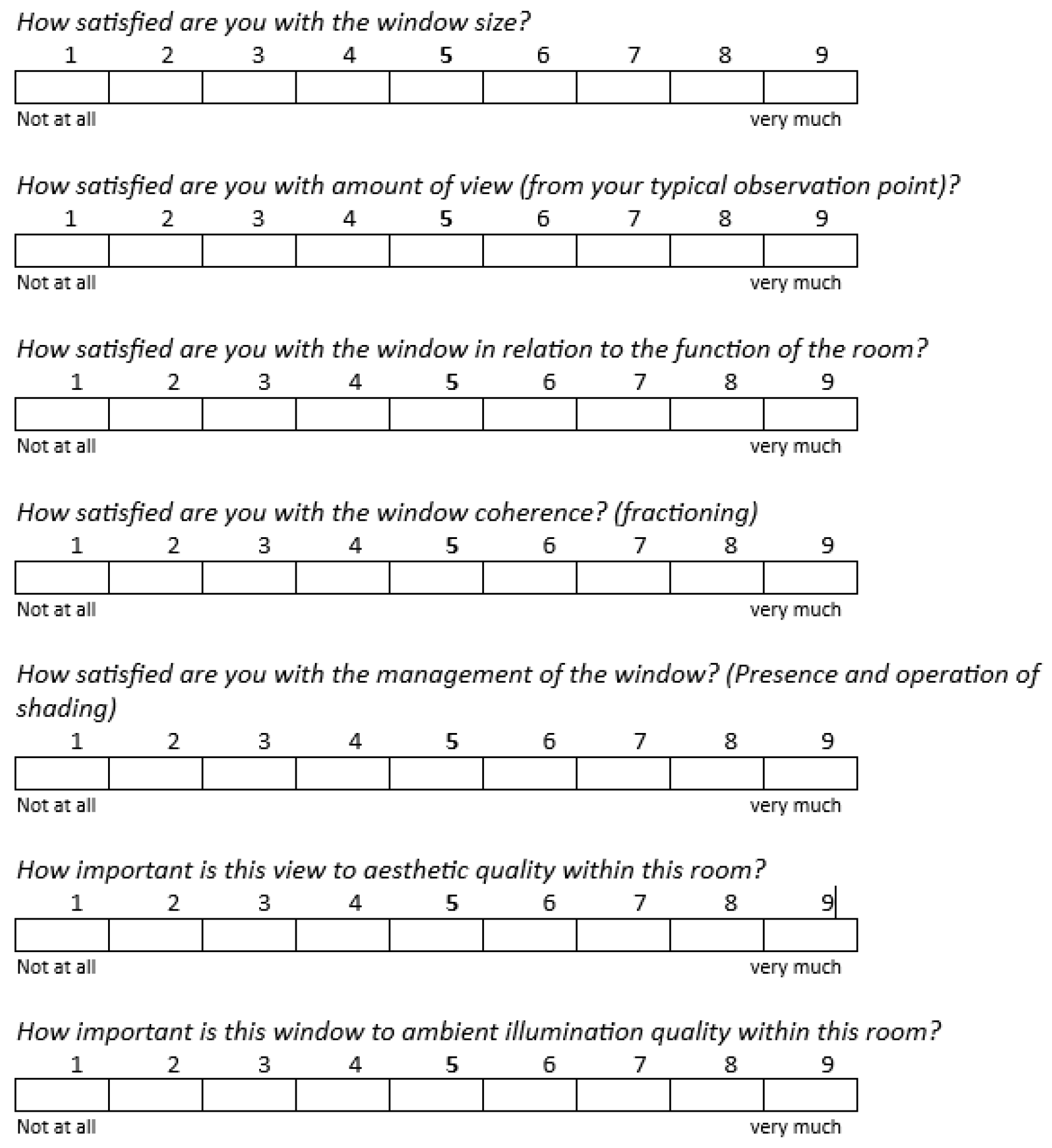 - Are there other circumstances that are important for your relationship with the window/view out that have not been mentioned yet?