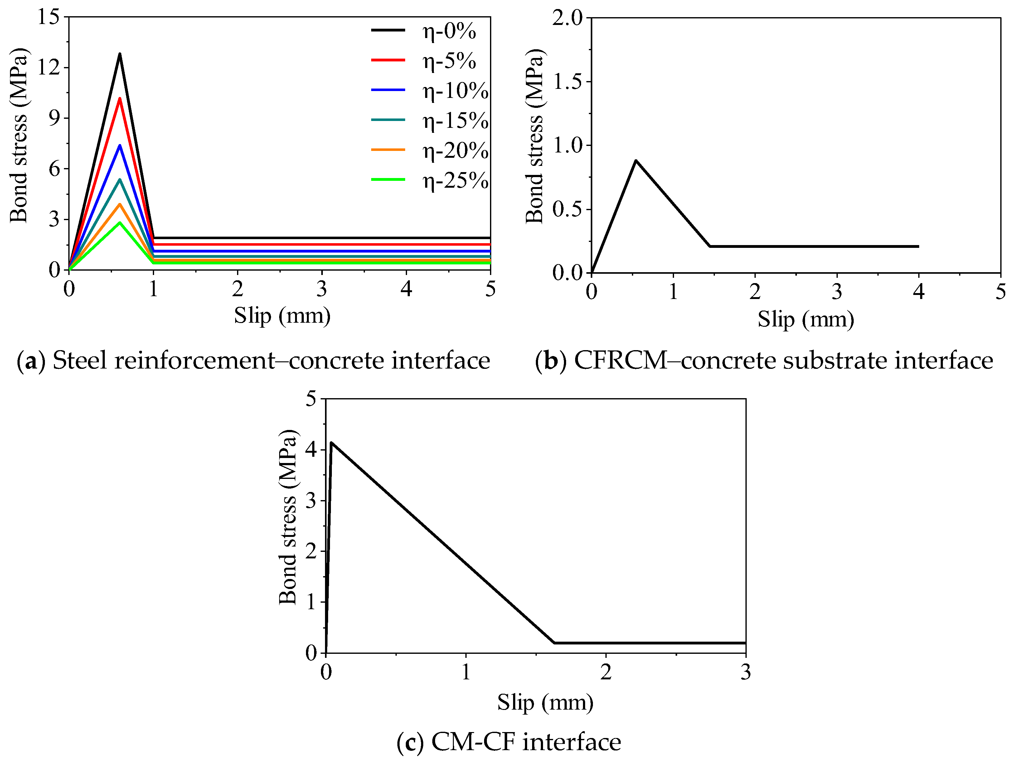 3.2.1. Bond–Slip Model Between Concrete and Steel Reinforcement