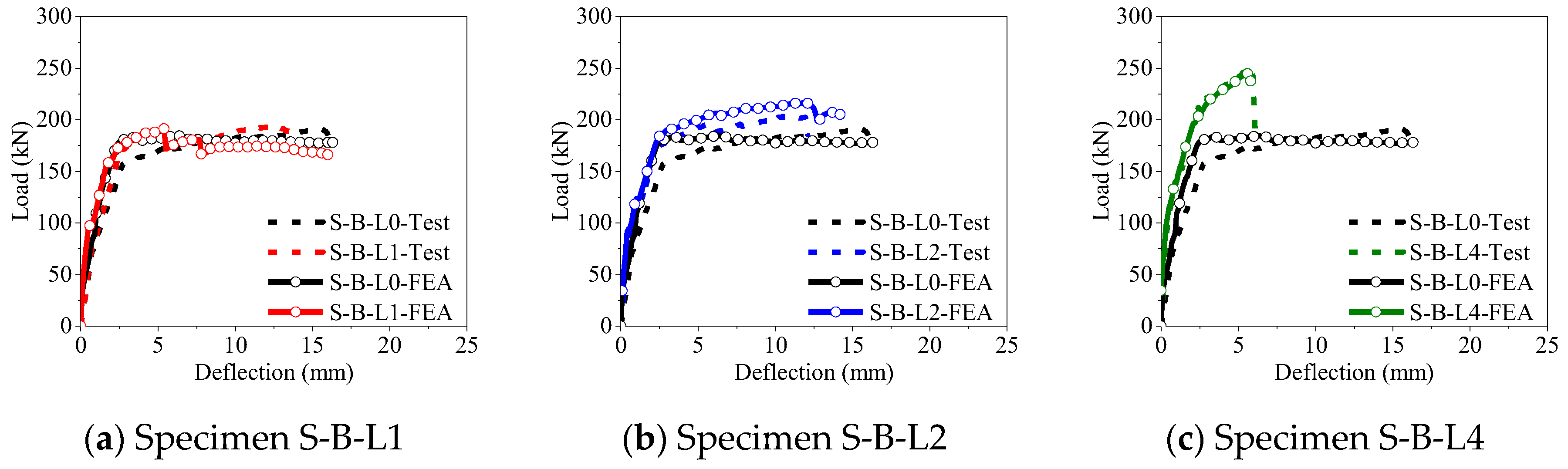 | Specimen | Reinforcement Ratio (%) | Corrosion Rate (%) | Pu,FEA (kN) | Mu,FEA (kN·m) | Specimen | Reinforcement Ratio (%) | Corrosion Rate (%) | Pu,FEA (kN) | Mu,FEA (kN·m) |