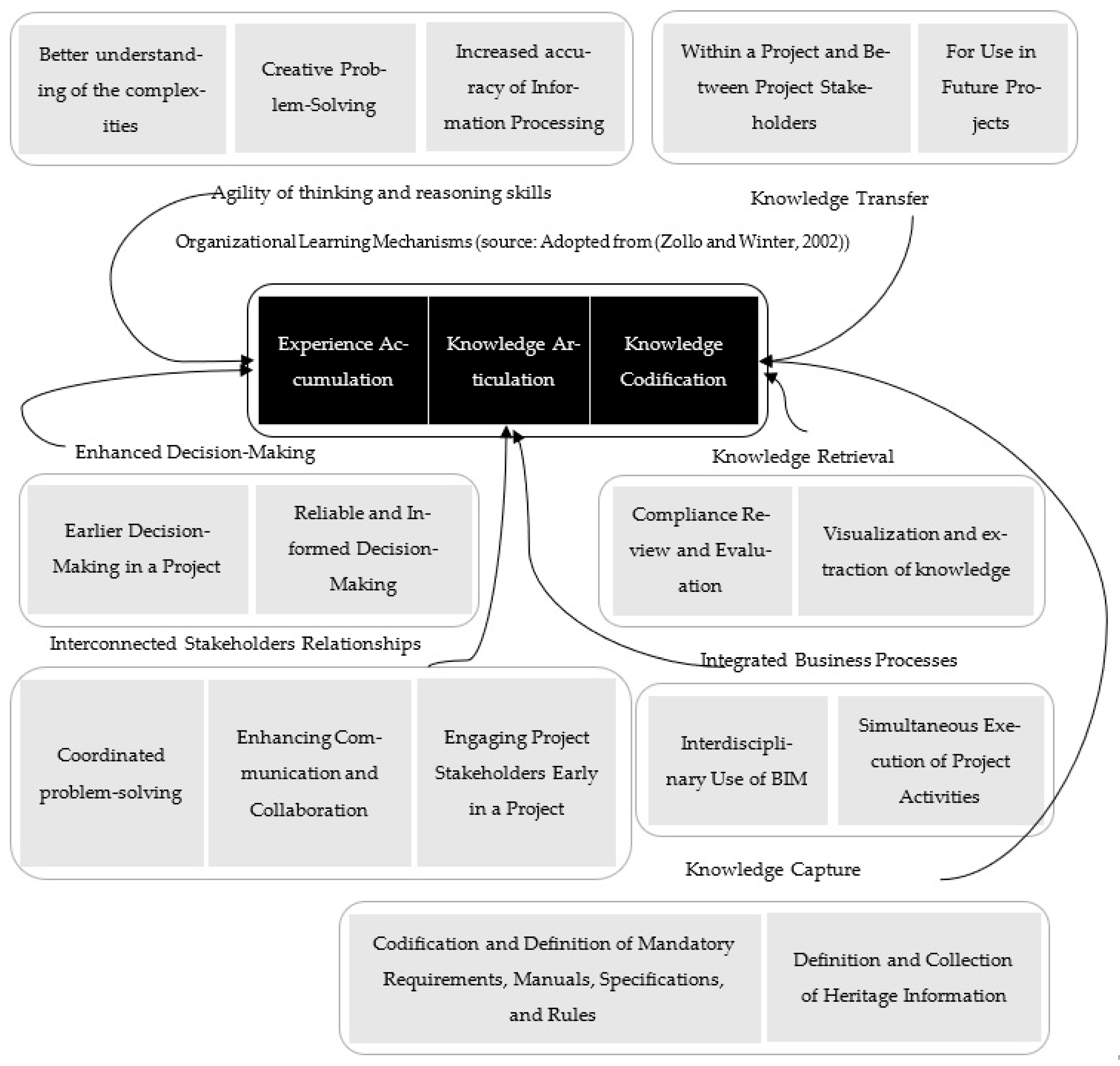 | 5 | BIM-facilitated Project Knowledge Retention | Codification and definition of mandatory requirements, terms, manuals, specifications, and rules to perform a task | 40 | Knowledge Codification |