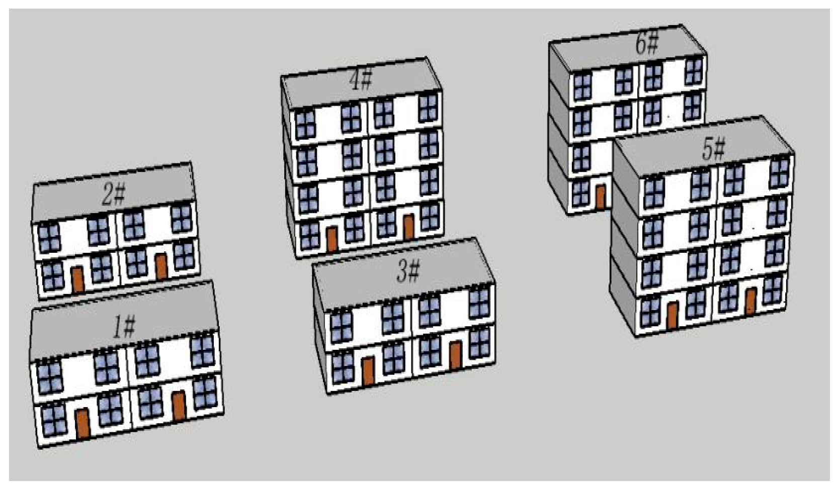 - Hou, K.; Li, S.; Sun, J. Impact Analysis of Local Microclimate Differences on Summer Cooling Energy Consumption of Residential Buildings. Build. Energy Effic. 2024, 52, 55–64. [Google Scholar]