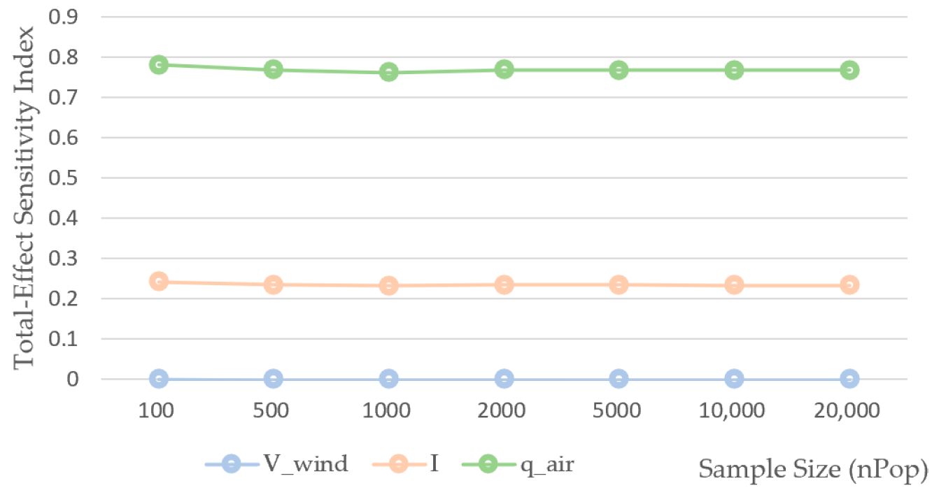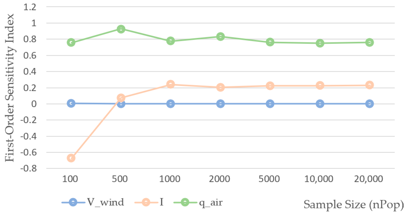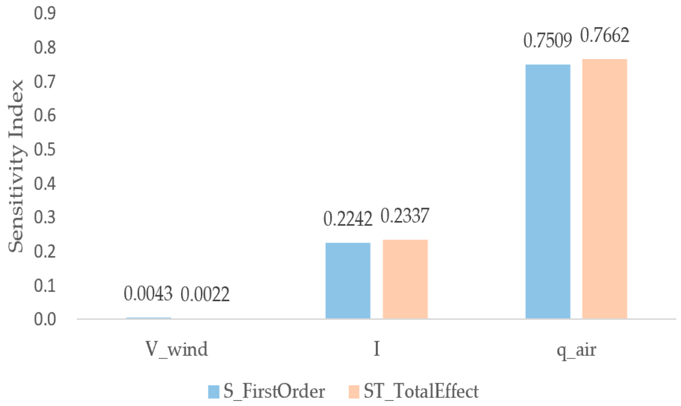 4.3.3. Sensitivity Analysis of Microclimatic Parameters on the Heating Load Model