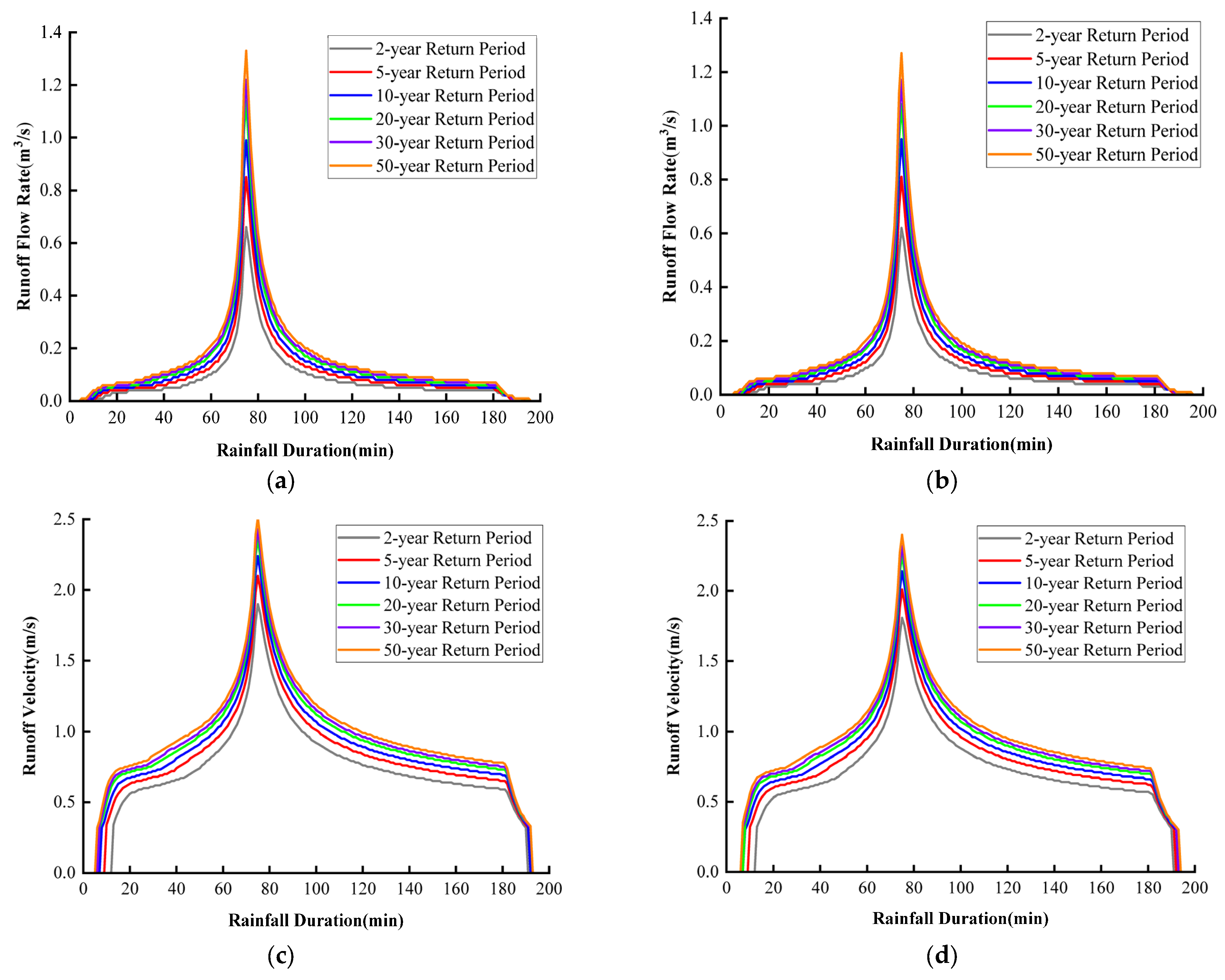 | Return Period (Year) | Tunnel Inlet/Outlet Location | Maximum Flow Velocity (m/s) | Maximum Depth (m) | Maximum Flow Rate (m3/s) |
