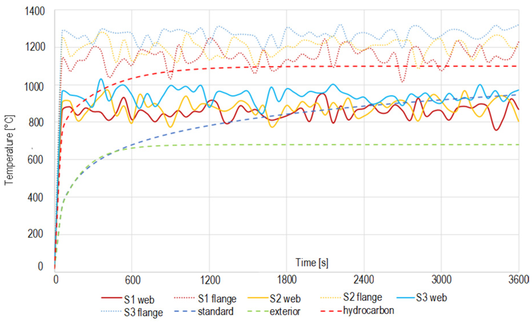 Figure 9a) and the hydrocarbon fire scenario (