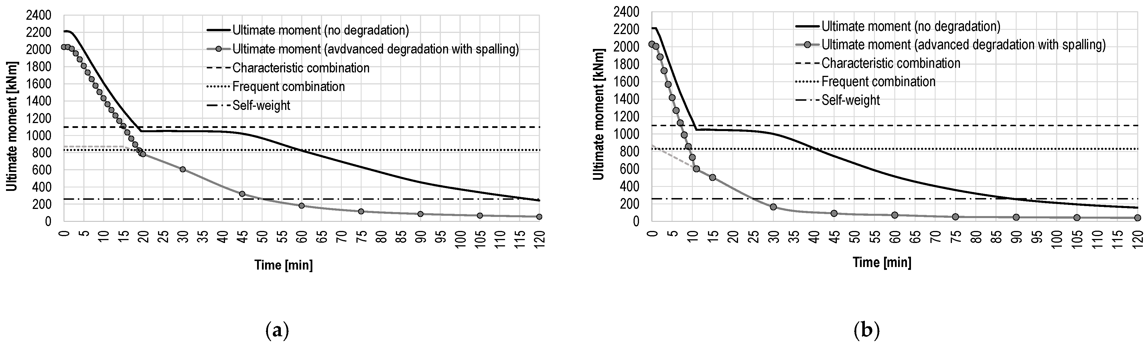 Figure 9 reports the evolution of the ultimate bending moment under the standard fire exposure (