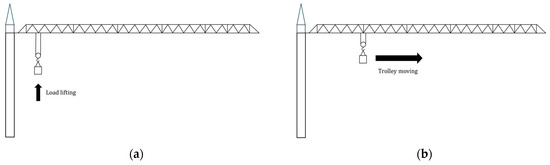 - Feng, R.; Zhang, E.; Dong, M. Jib vibration and payload swing of tower cranes in the case of trolley motion. Arab. J. Sci. Eng. 2021, 46, 12179–12191. [Google Scholar] [CrossRef]