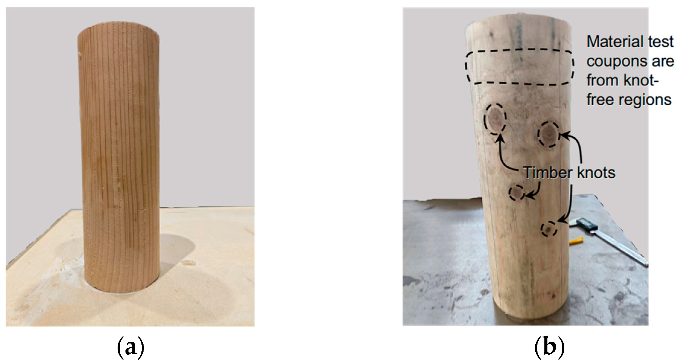 - It should be noted that this study focuses on the effect of the timber knots on the behavior of short timber columns. More research on the quantitative effect of the knot type, size, and position, along with the column height, the behavior of slender timber columns with knots, and the knot type, will be conducted in the future.
