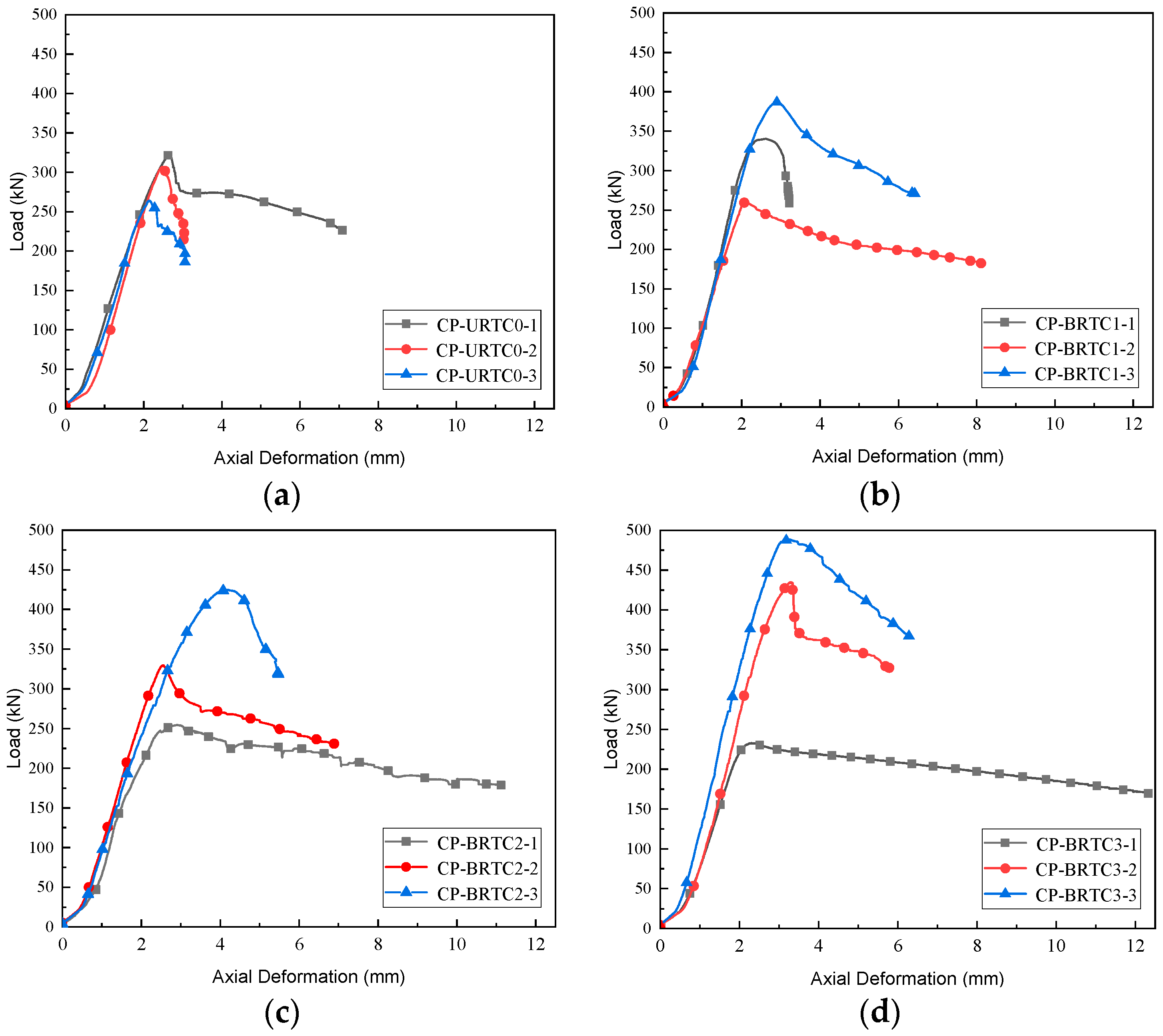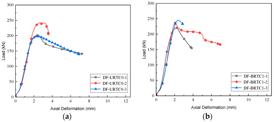 3.2. Axial Load–Deformation Relationship