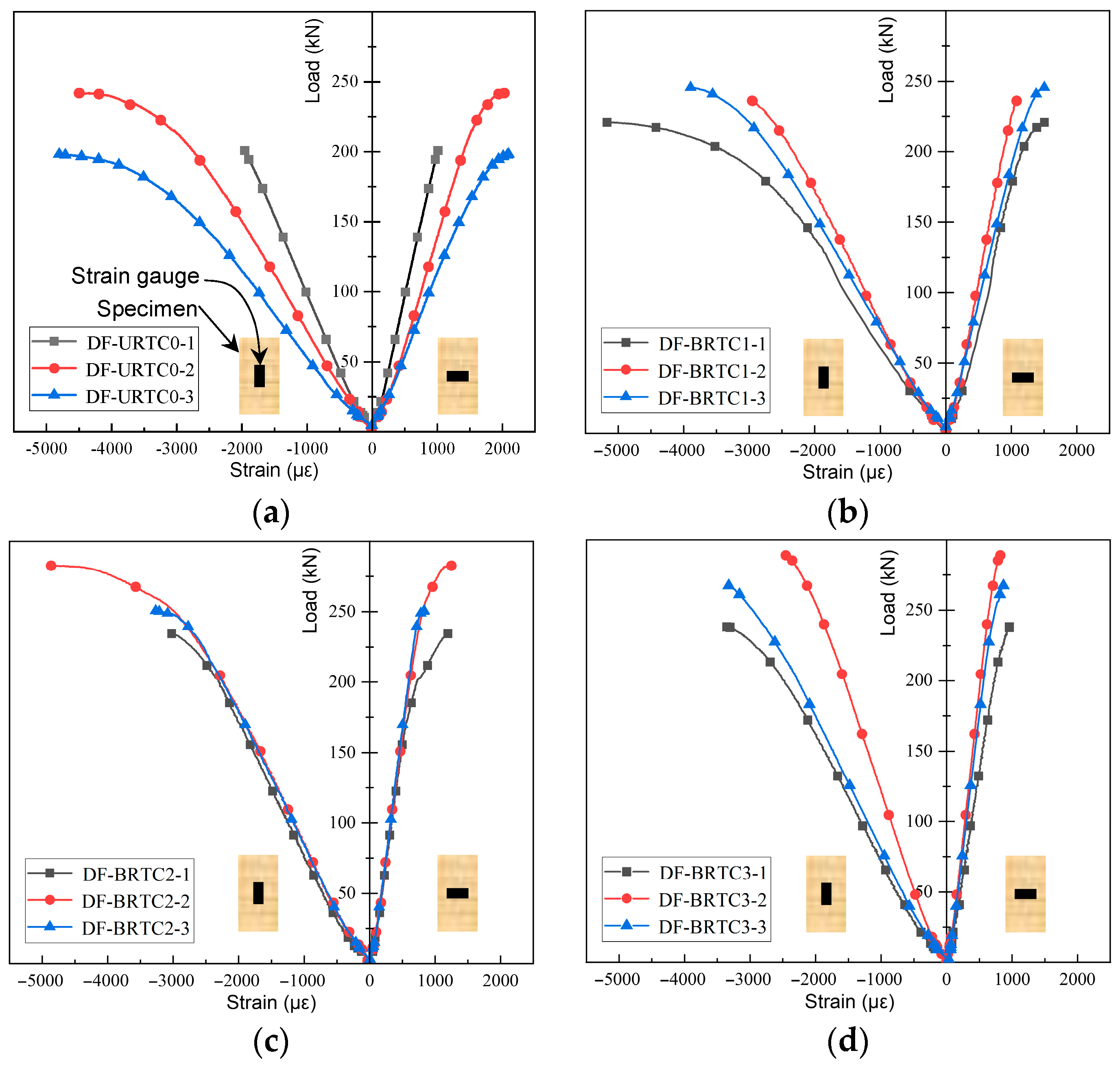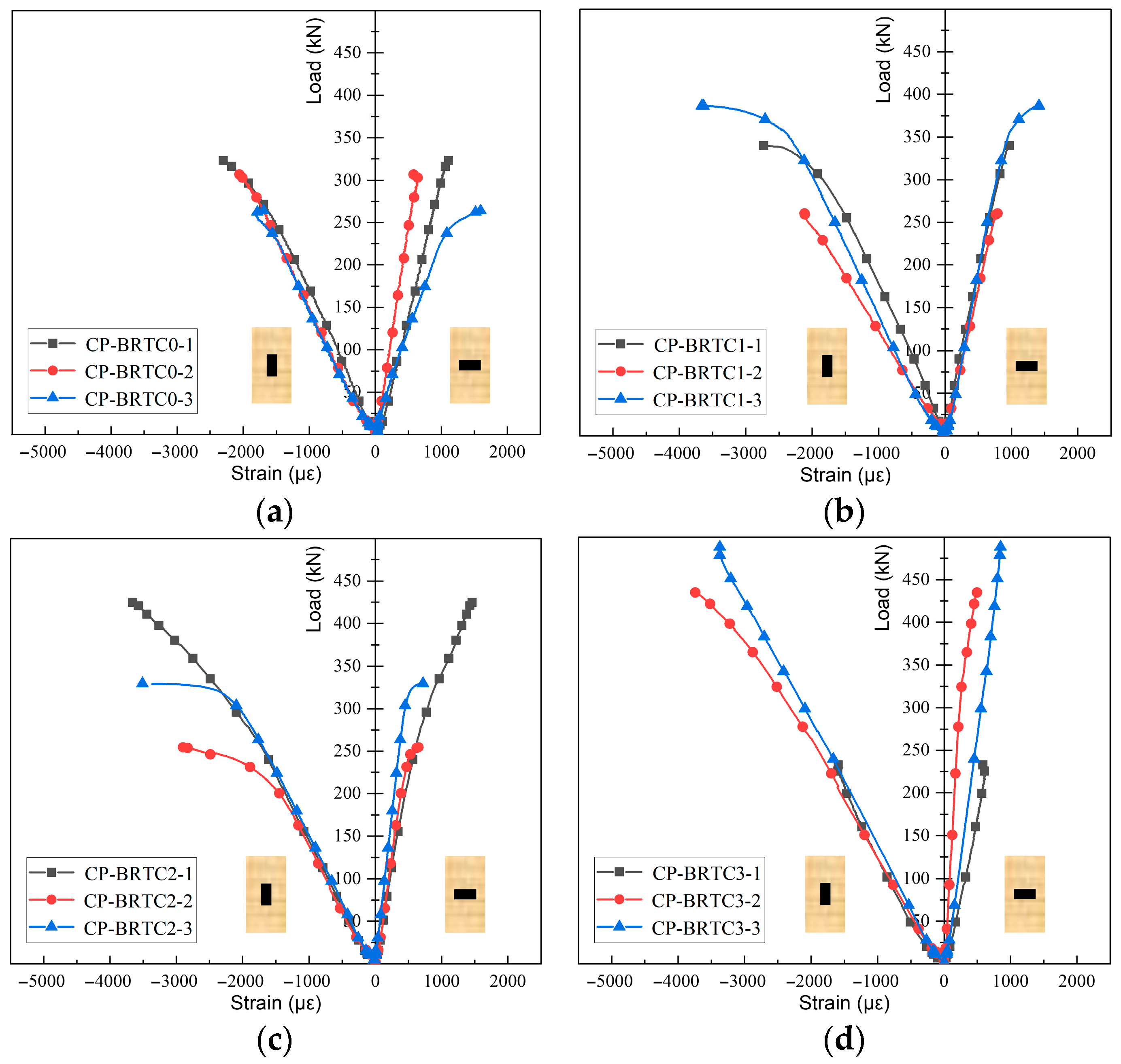 3.6. Load–Strain Relationship