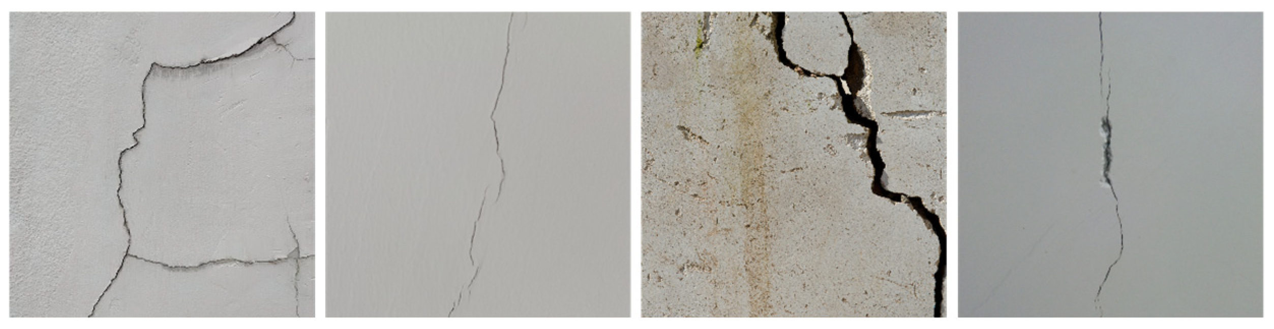 - Chen, K.; Reichard, G.; Xu, X.; Akanmu, A. Automated crack segmentation in close-range building façade inspection images using deep learning techniques. J. Build. Eng. 2021, 43, 102913. [Google Scholar] [CrossRef]