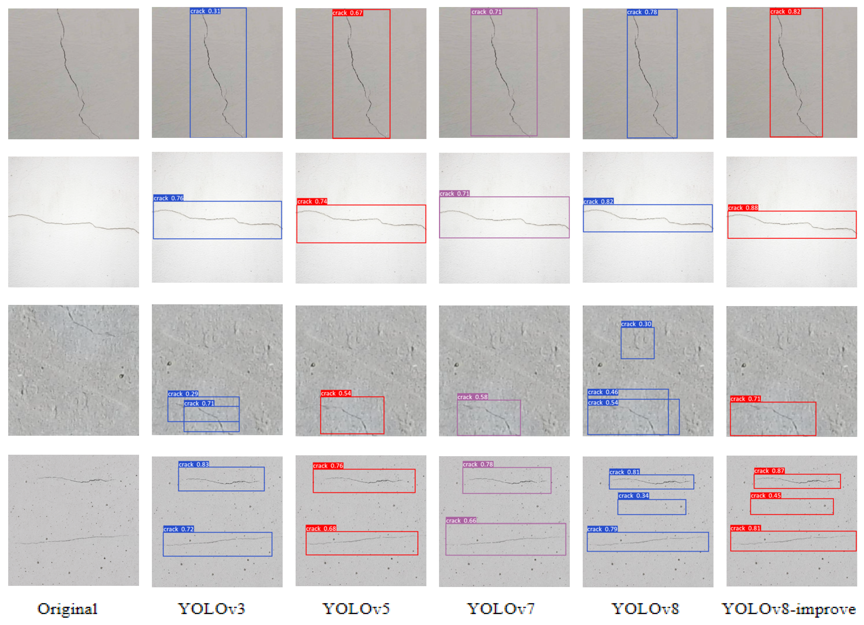 4.2. Crack Detection Experiments Based on YOLOv8