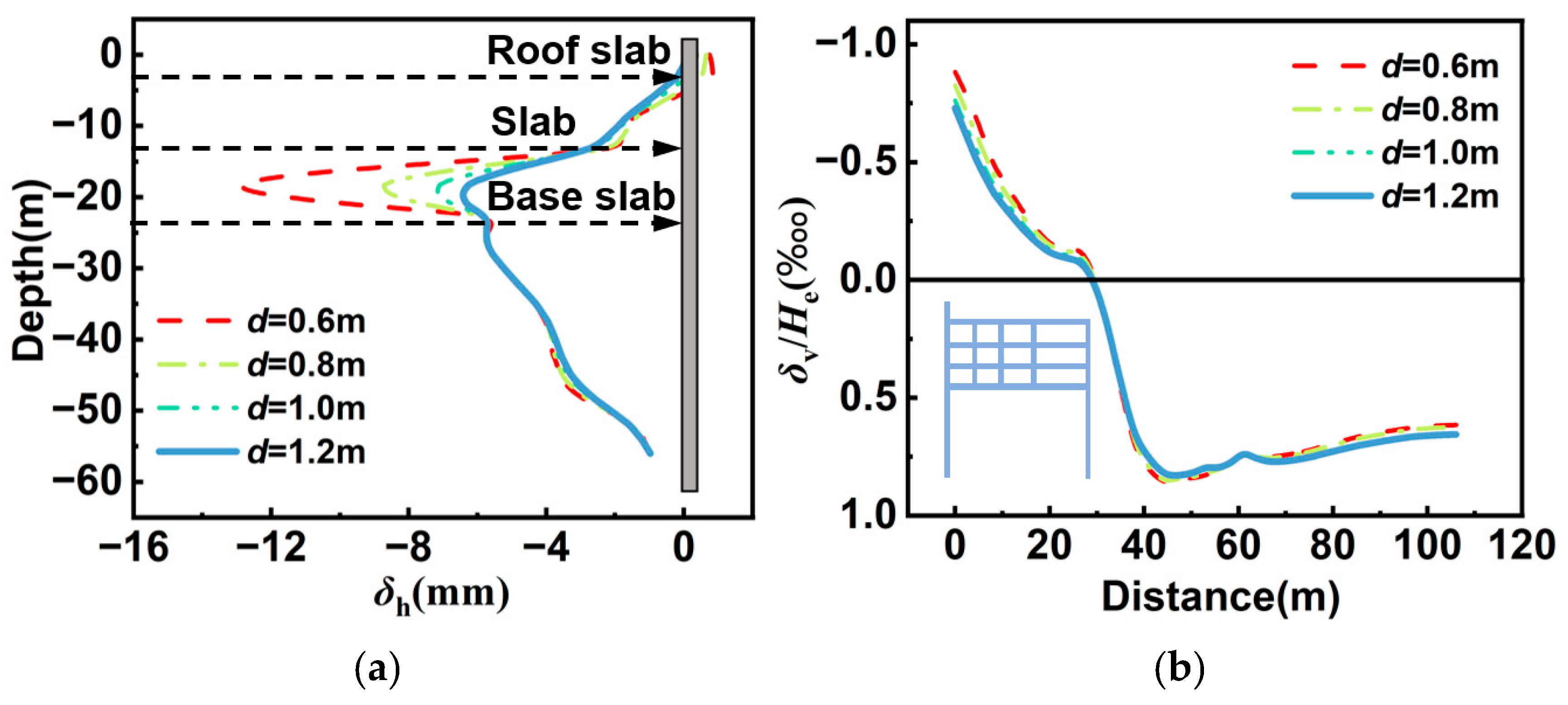 | Thickness of the shared diaphragm wall when D = 0 (d) | 0.6 m, 0.8 m, 1.0 m, and 1.2 m |