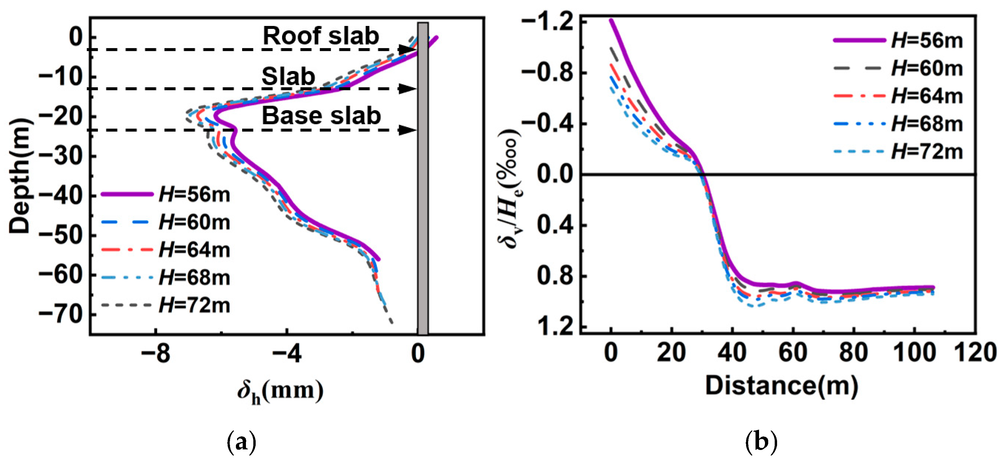 | Depth of the shared diaphragm wall when D = 0 (H) | 56 m, 60 m, 64 m, 68 m, and 72 m |