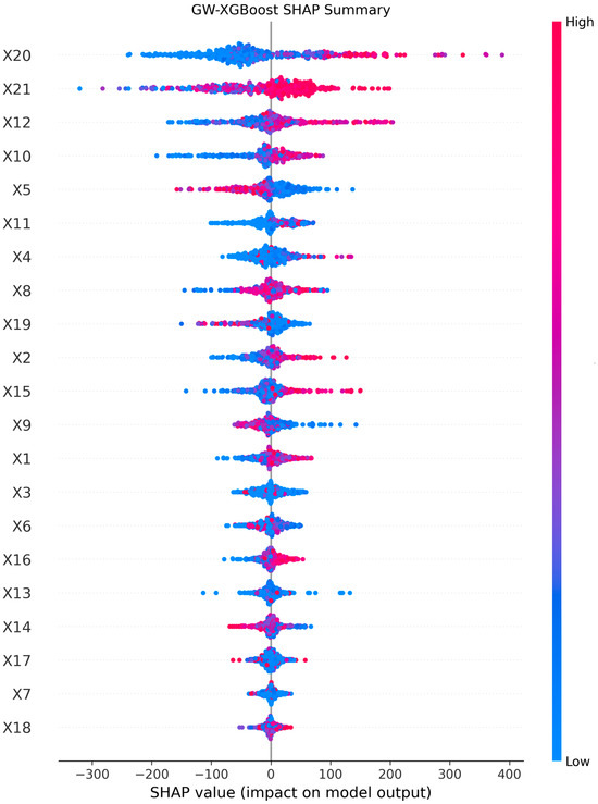 To strictly account for both spatial non-stationarity and nonlinear relationships in carbon emission modeling, this study adopts the GW-XGBoost framework proposed by Dong et al. [48]. Unlike traditional global models that assume a constant relationship across the study area, the GW-XGBoost model integrates the spatial weighting structure of Geographically Weighted Regression (GWR) into the ensemble learning architecture of XGBoost. This approach allows for the construction of localized models for each spatial unit, thereby capturing spatially varying driving mechanisms.