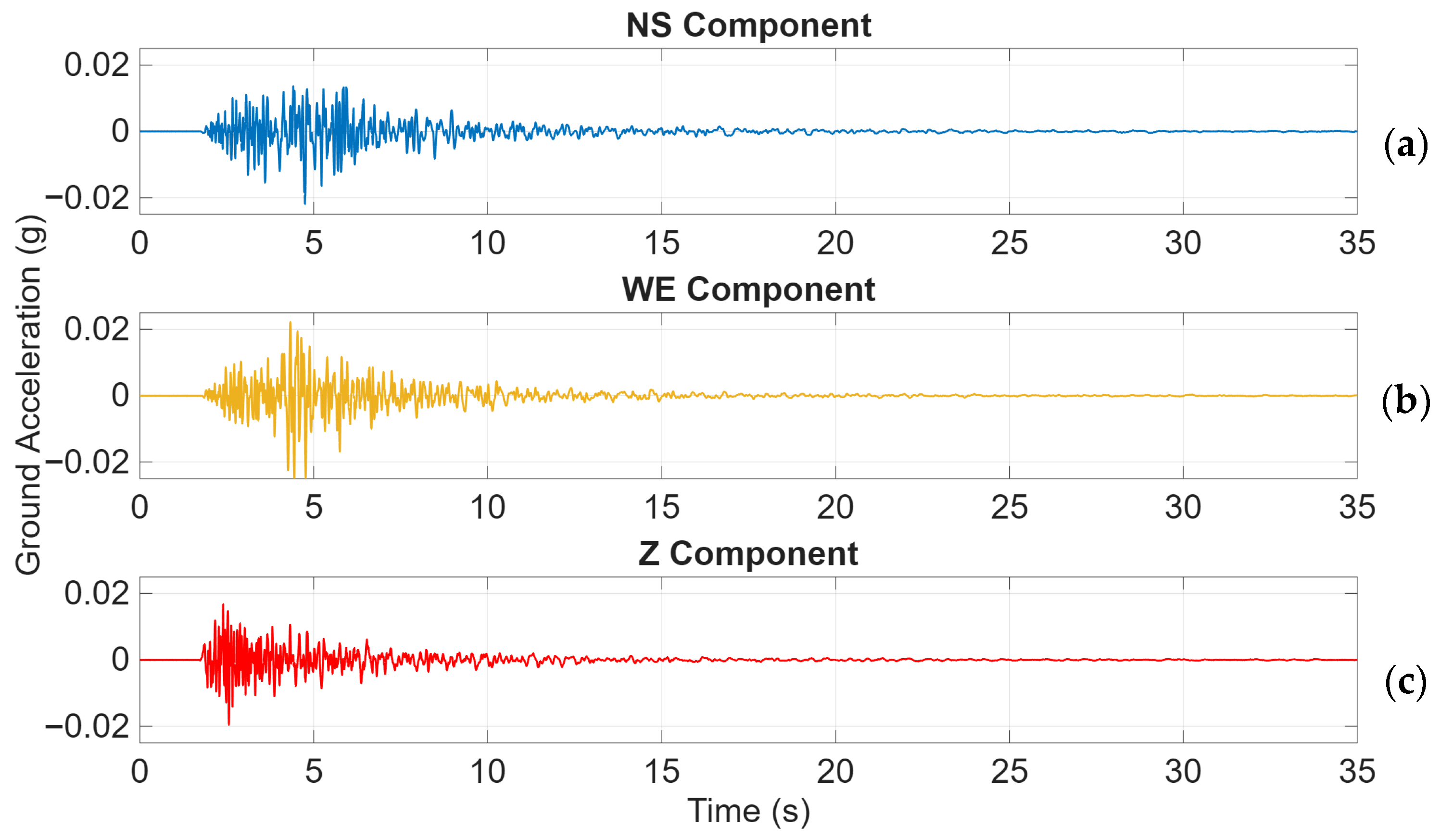 The recorded three-component accelerograms (