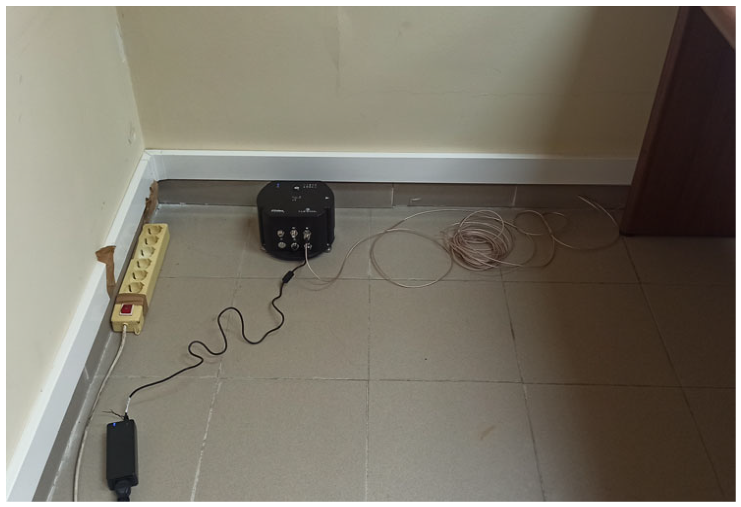 This configuration enables reliable comparative analyses of amplitude, frequency content, and phase relationships among the different measurement points, providing a robust experimental basis for preliminary assessments of structural response under low-amplitude seismic excitation. Assuming a conservative dynamic range of 136 dB, referred to full-scale sinusoidal RMS, the equivalent instrumental RMS noise is approximately 10−7 N (sub-micro-g). It is evident that the 24-bit quantization step for a ±1 g range is approximately 2 g/224 ≈ 1.2 × 10−7 g, signifying that quantization noise does not act as a limiting factor. Consequently, even for weak events (PGA ≈ 0.003 g), the expected instrumental SNR remains high (approximately 1.9 × 104).