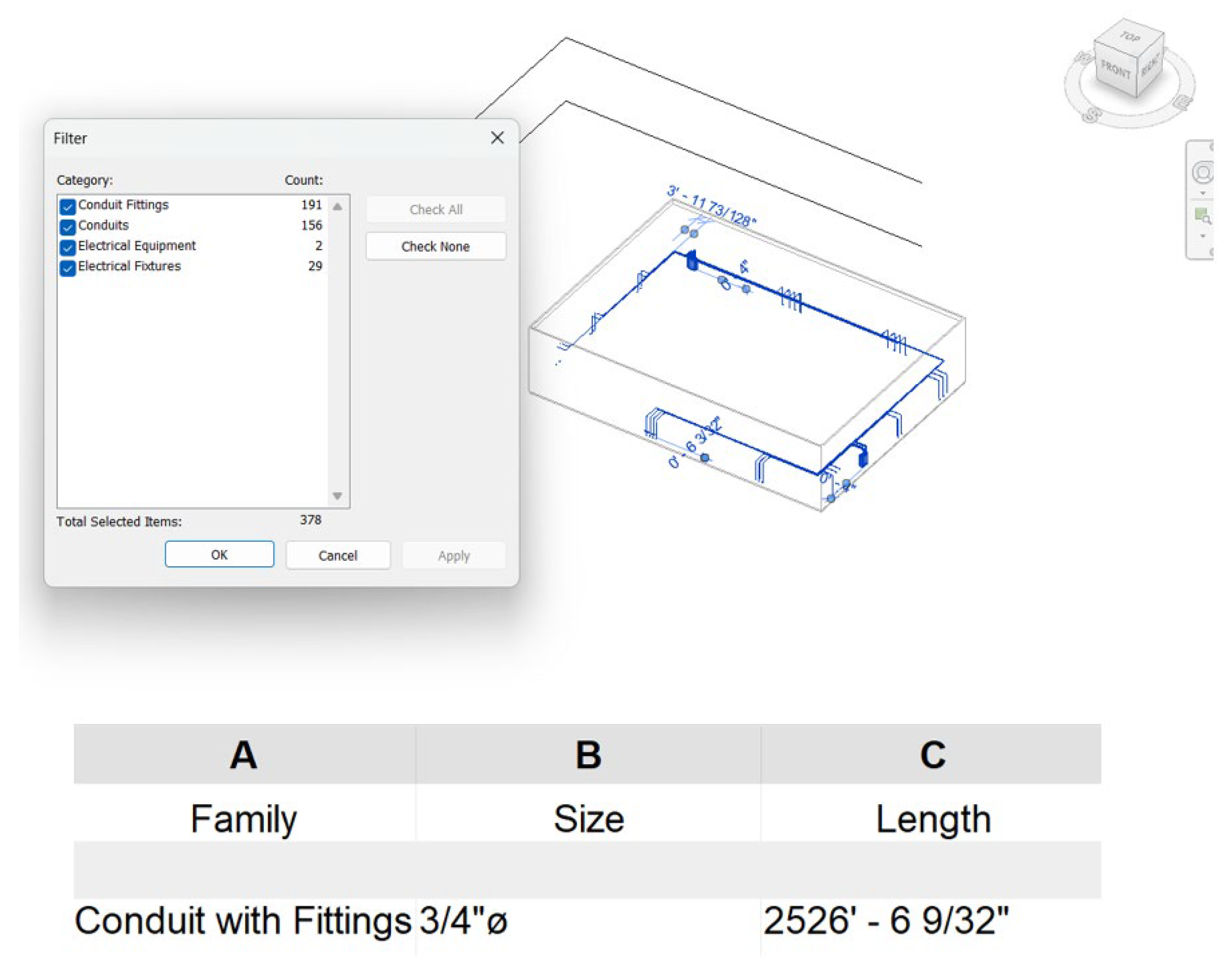 - Category Exclusion: Elements in ambiguous categories (e.g., “Electrical Fixtures” containing both receptacles and junction boxes) are filtered by family name before counting.