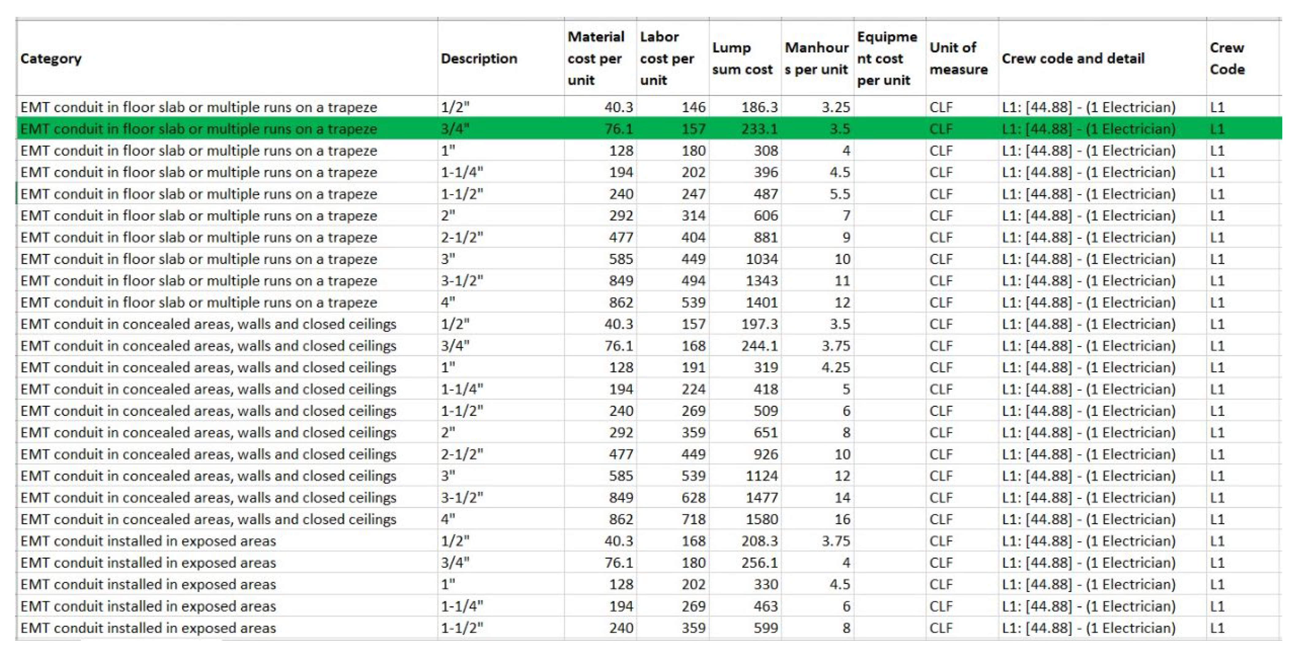 | Cost Database | Craftsman National Building Cost Manual 2025 (Electrical) | 13,395 items; Material, Labor, Equipment Costs |