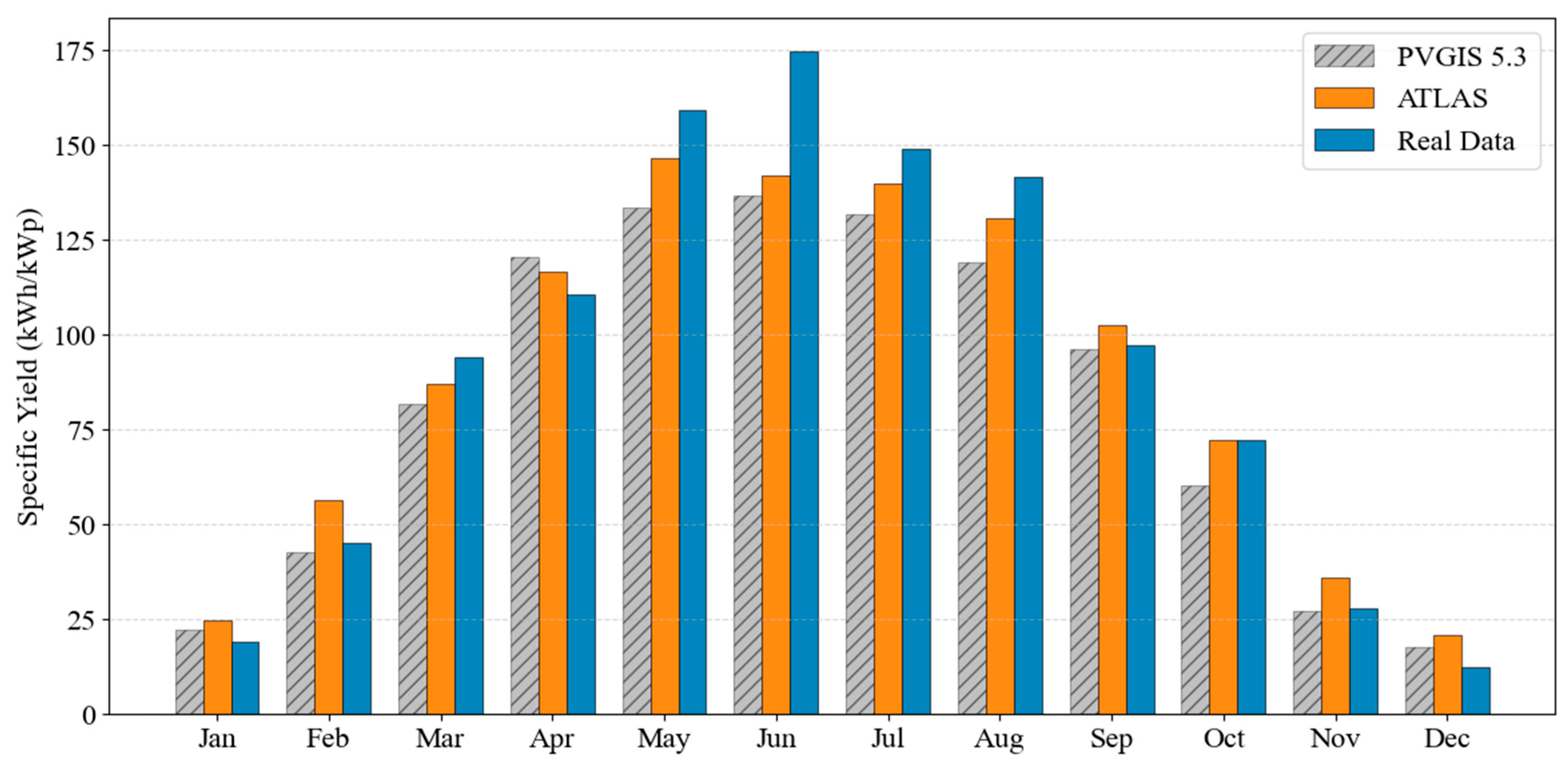 | Metric | ATLAS Model | PVGIS 5.3 | Real Data |