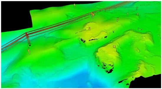 The point cloud data were processed to generate an elevation map of the slope body, as shown in Figure 6. The elevation map displays the distribution of terrain heights using color coding, intuitively distinguishing regional elevation differences through a range of colors. This elevation map effectively reveals the steepness of the slope body and localized abnormal fluctuations, providing a topographic basis for subsequent numerical simulations. Significant height differences between different geological structural zones are clearly observable on the elevation map, providing necessary evidence for potential risk assessments in landslide-prone areas.