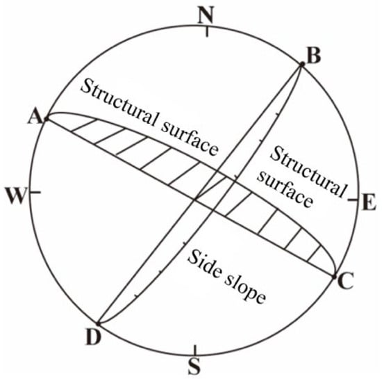 However, there are relatively few studies on the stability analysis of high rock slopes. The rock mass structure consists of two elements: structural planes and rock blocks. The distribution characteristics of structural planes have a significant impact on the engineering properties of rock masses. Therefore, obtaining information on rock mass structural planes is crucial for rock mass stability analysis [5]. Identifying potential sliding surfaces is an essential step in slope stability analysis. Currently, sliding surface search methods primarily include the fixed-mode search method, mathematical programming method, random search method, artificial intelligence method, and analytical method [6]. The fixed-mode search method predefines the search range, calculates the safety factor for each point or grid, gradually reduces the step size, and connects points corresponding to the minimum safety factor to determine the sliding surface. In recent years, 3D laser scanning technology has become a development trend for the non-contact acquisition of structural plane information because of its long measurement distance, fast sampling speed, high point positioning accuracy, and non-contact measurement [7,8]. Many scholars at home and abroad have applied 3D laser scanning technology to geological surveys of high and steep rock slopes, such as obtaining rock fracture information, rock outcrop information, and rock mass structural plane information [9,10].