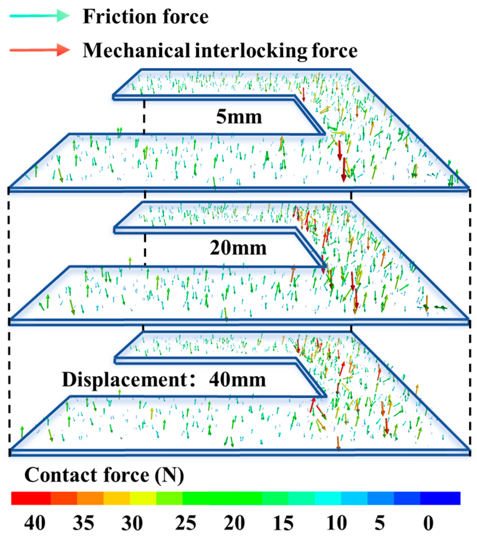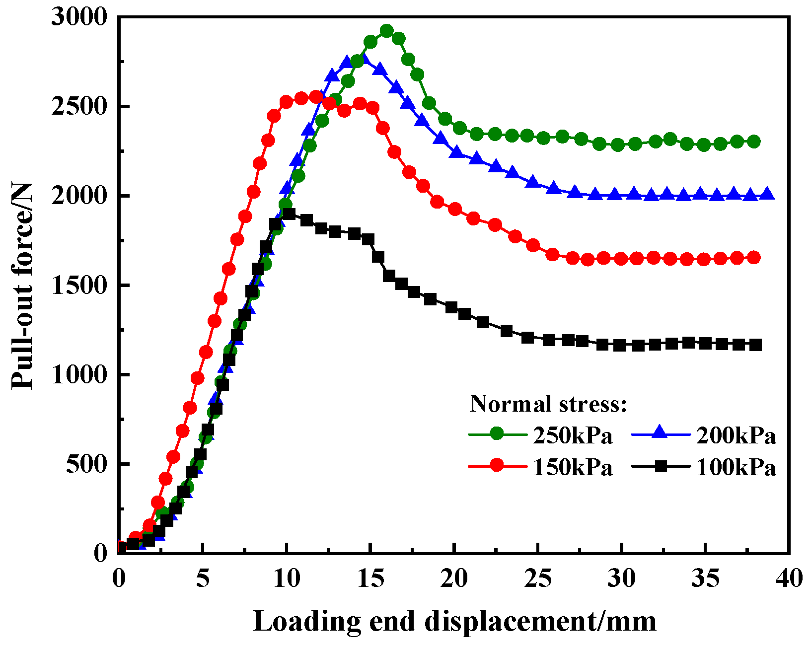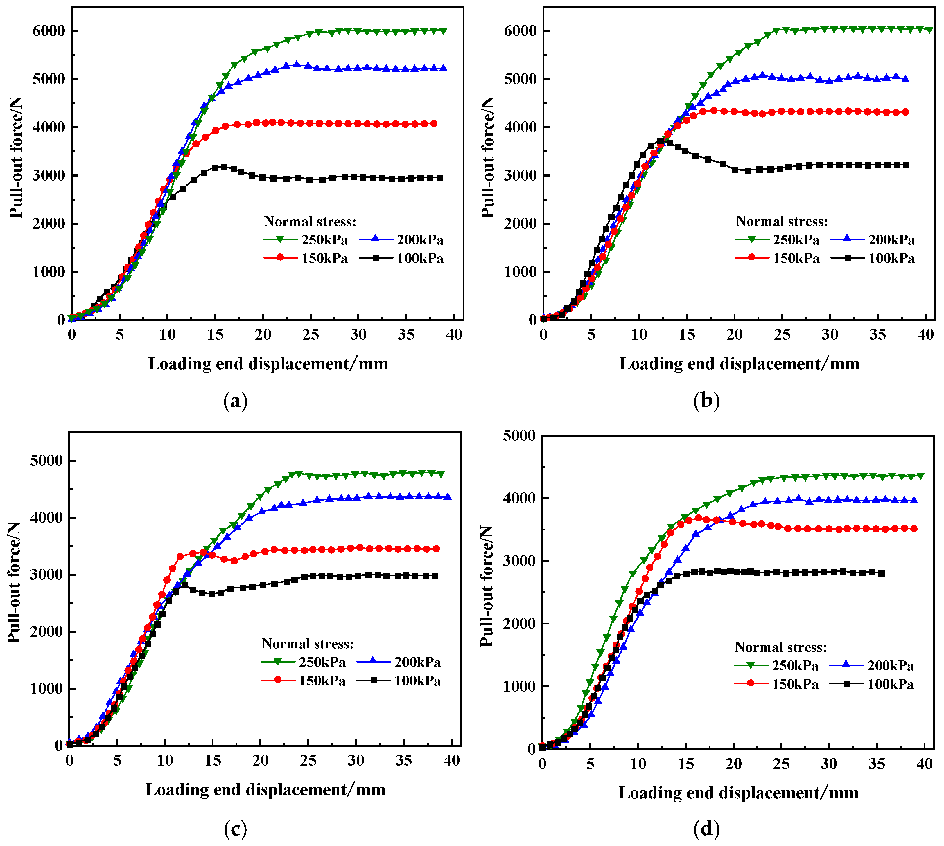 4.3.2. Stress Analysis of Soil–Reinforcement Interface
